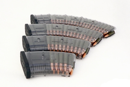 Выполнены из полиамида черного цвета. При этом конструкция более длинных магазинов имеет возможность путем необратимых изменений укоротить магазин под меньшую емкость, отпилив не востребованную часть. Кроме пружины подавателя, все остальные узлы магазина пластиковые. Благодаря этому удалось сделать магазины максимально легкими с достаточным (из-за использования полиамида) запасом прочности.