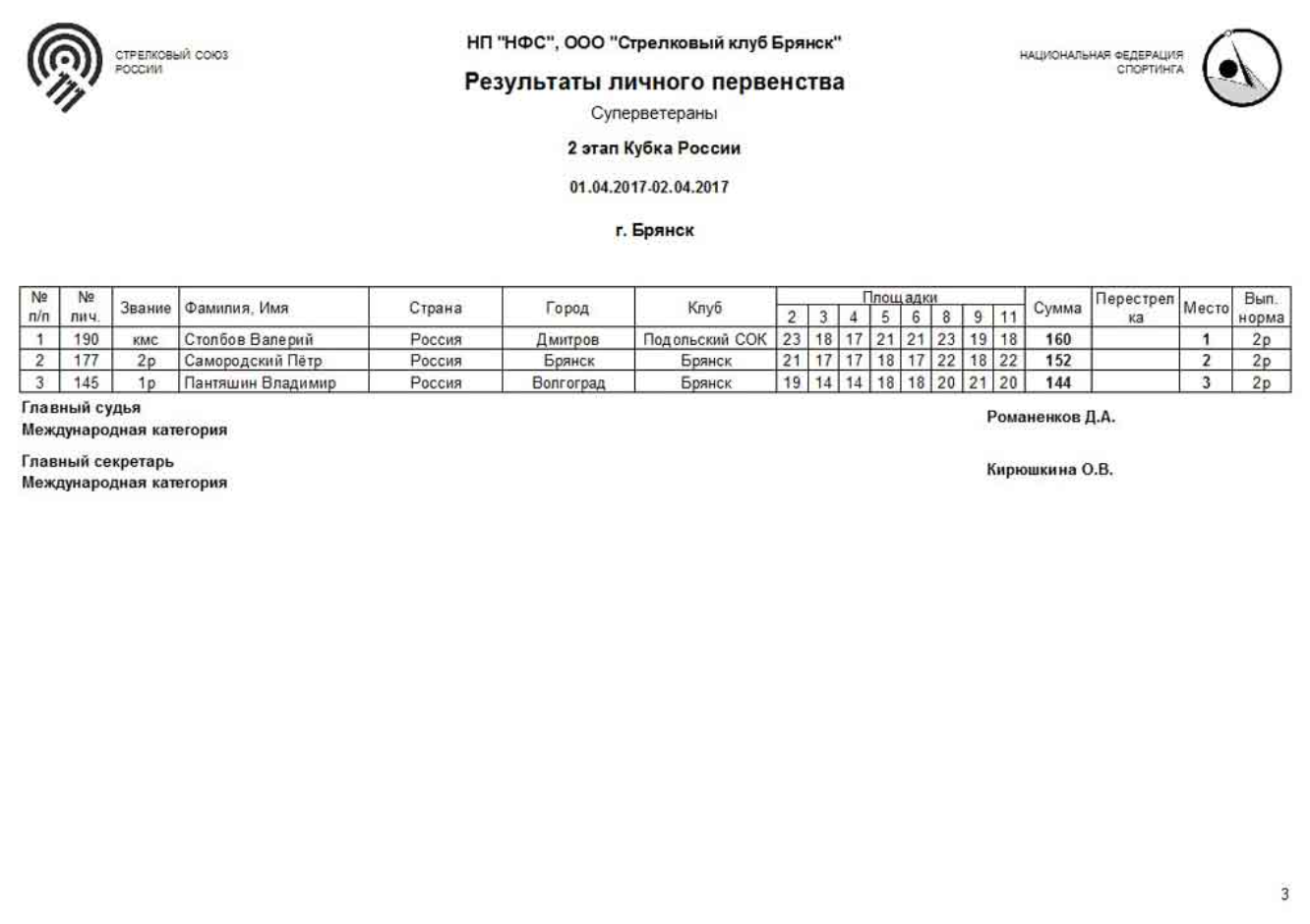 3.2.1. Количество судей устанавливается в соответствии со Всероссийскими Правилами соревнований по спортингу и настоящим Регламентом.