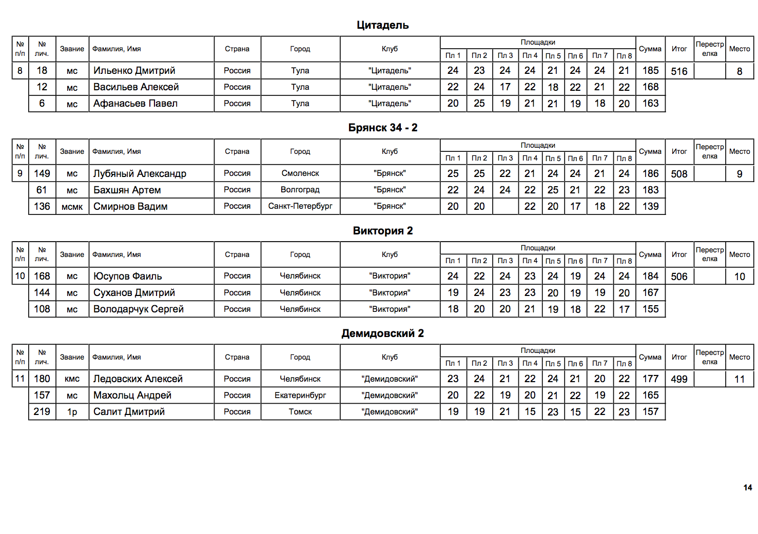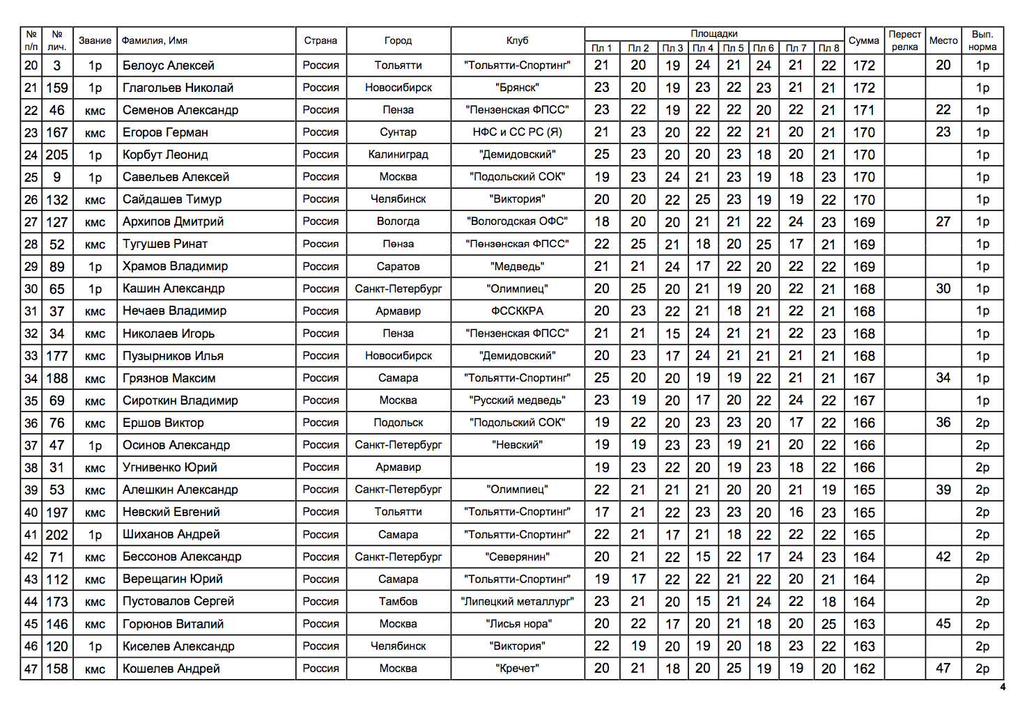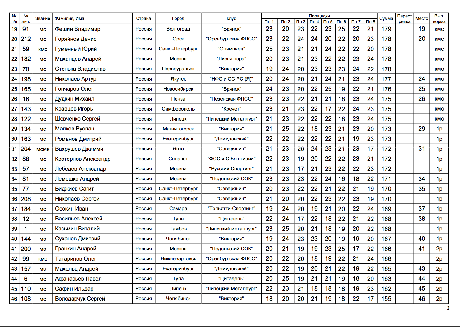 - определение рейтинга спортсменов;