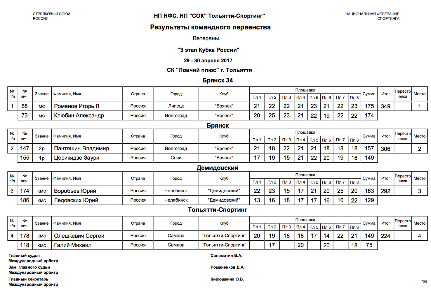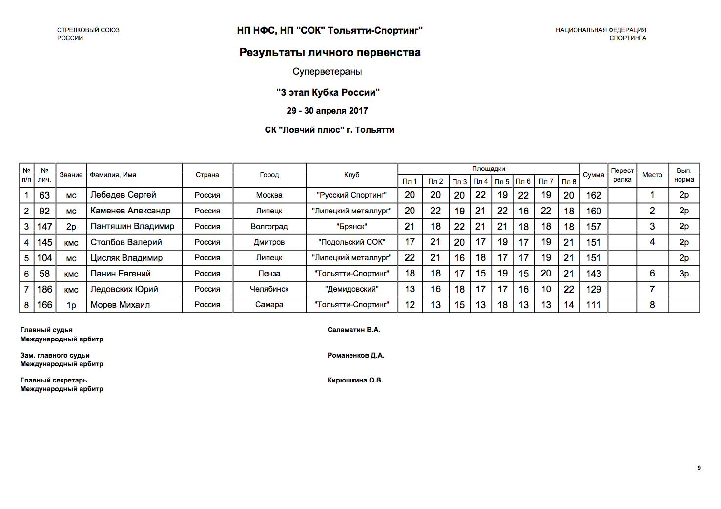 3.2.1. Количество судей устанавливается в соответствии со Всероссийскими Правилами соревнований по спортингу и настоящим Регламентом.