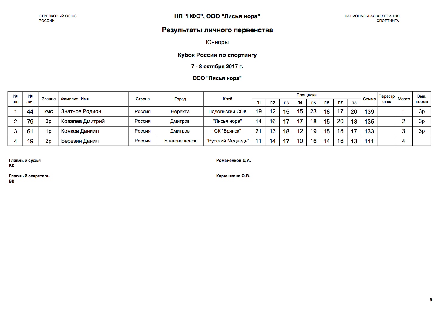 3.2.1. Количество судей устанавливается в соответствии со Всероссийскими Правилами соревнований по спортингу и настоящим Регламентом.