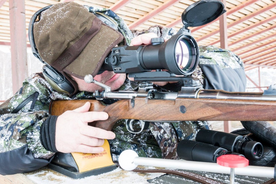 Тепловизионный прицел Dedal-T4.642 - флагаман линейки тепловизоров Дедал и пожалуй один из лучших тепловизионных прицелов, что неоднократно подтверждалось на специализированнных соревнованиях, имеет самые высокие технические характеристики и возможности, качество картинки. Имеет кратность 4х (объектив 100мм/F1,6), матрицу 640х480 17 мкм (Ulis, Франция), частотой 25 Гц. У данной модели, в отличии от Dedal-T4.642 Hunter установлено самый высококачественный "контрастер", что обеспечивает самую лучшую картинку линейки Dedal-T и всех современных тепловизионных прицелов, обеспечивает лучшее изображение в плохих погодных условиях и на больших дистанциях: более 500 м.
