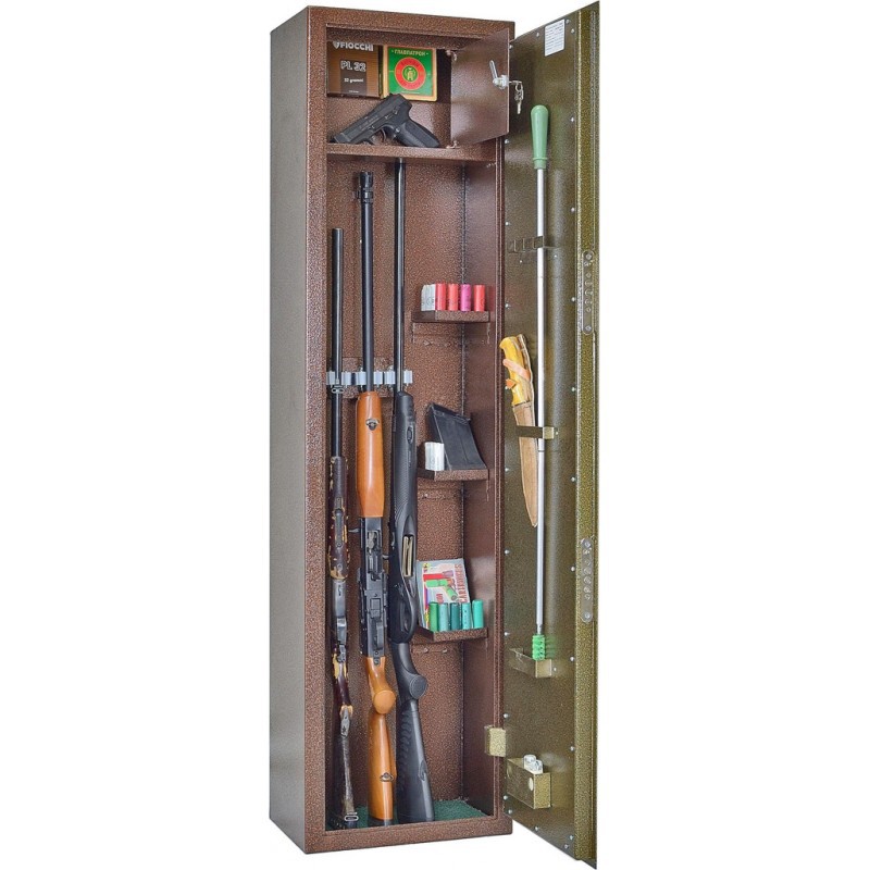 Сейф оружейный односекционный ОШ-4 сертифицирован на устойчивость к взлому по ГОСТ Р 50862-2005 п.п. 5.1., 5.2. и соответствует классу Н0 (ниже нулевого) устойчивости к взлому. Корпус сейфа толщиной 2 мм, дверь толщиной 2 мм. На задней стенке корпуса расположены отверстия для крепления. Сейф односекционный, на 4 ствола оснащен съемными полками и отделением под патроны. Ложементы — металлические держатели с резиновыми роликами. Максимальная высота устанавливаемого оружия — 1350 мм. Два замка ЗАО «Про-Сам» г. Рязань или аналогичные замки другого производителя.