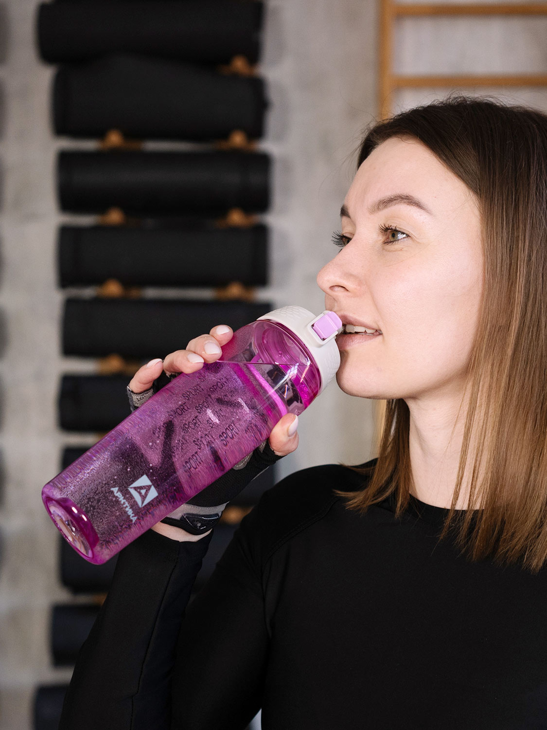 Особая форма и специальное покрытие бутылки не даст ей выскользнуть даже из вспотевших ладоней. Подходит для большинства подстаканников и держателей на тренажерах, беговых дорожках и велосипедах. Ее также можно переносить за петлю или закрепить карабином. Бутылка надежно защищена от случайного открывания кнопкой с фиксатором, и при этом легко открывается одной рукой. Более широкий, чем у повседневных бутылок из тритана, питьевой носик, а также отверстия для выхода воздуха не дают воде расплескаться даже при сильном и резком наклоне бутылки.