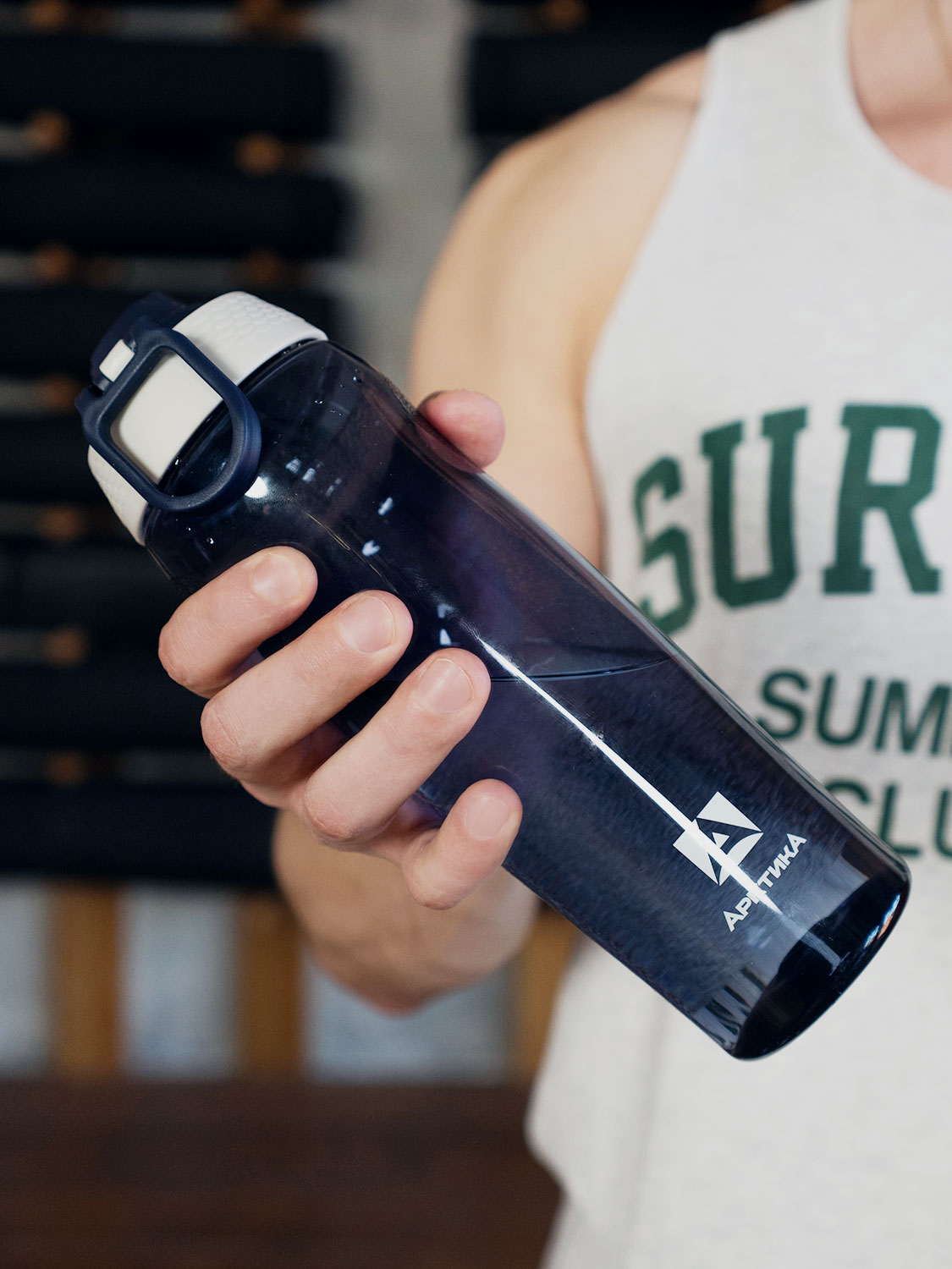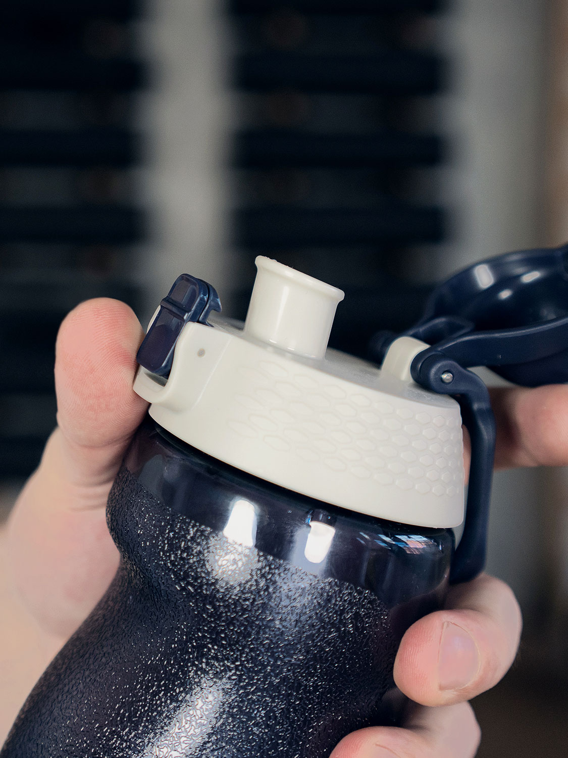 Особая форма и специальное покрытие бутылки не даст ей выскользнуть даже из вспотевших ладоней. Подходит для большинства подстаканников и держателей на тренажерах, беговых дорожках и велосипедах. Ее также можно переносить за петлю или закрепить карабином. Бутылка надежно защищена от случайного открывания кнопкой с фиксатором, и при этом легко открывается одной рукой. Более широкий, чем у повседневных бутылок из тритана, питьевой носик, а также отверстия для выхода воздуха не дают воде расплескаться даже при сильном и резком наклоне бутылки.