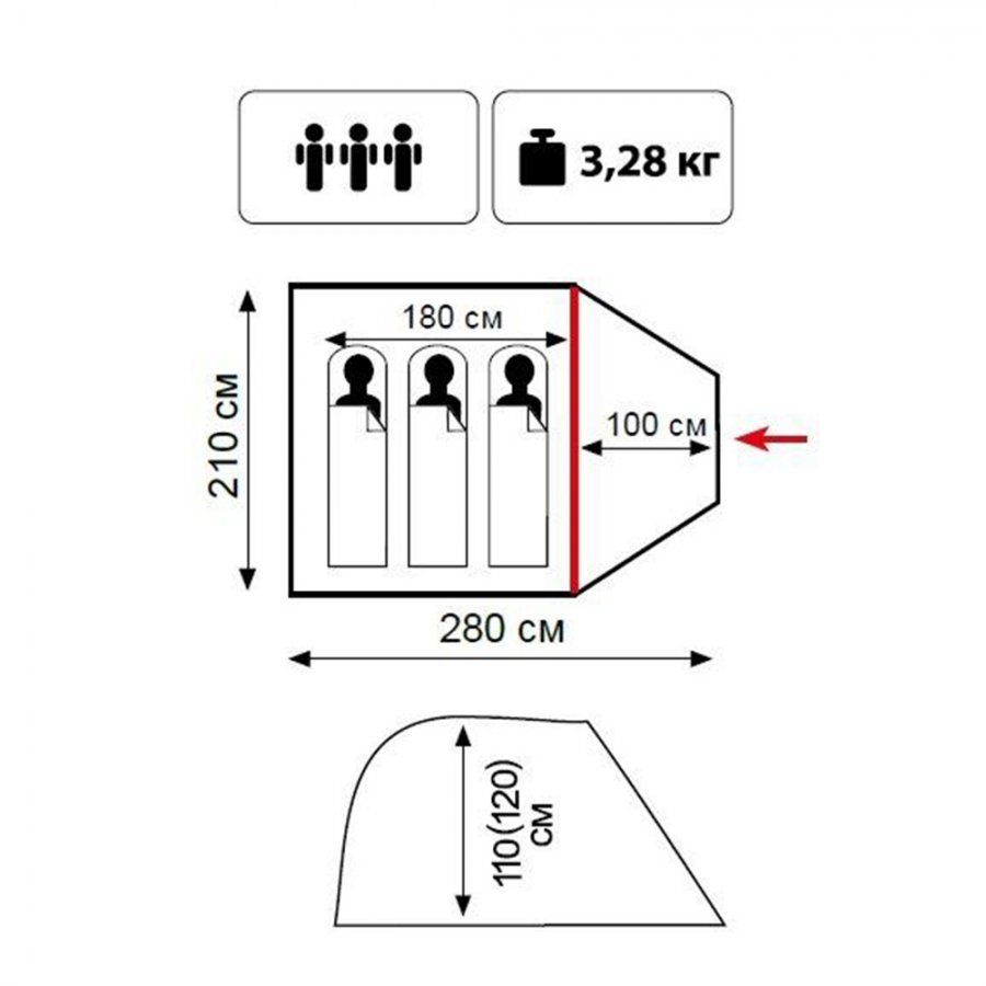 - Внешний размер (ДxШxВ) 210 х 180 х 120 см