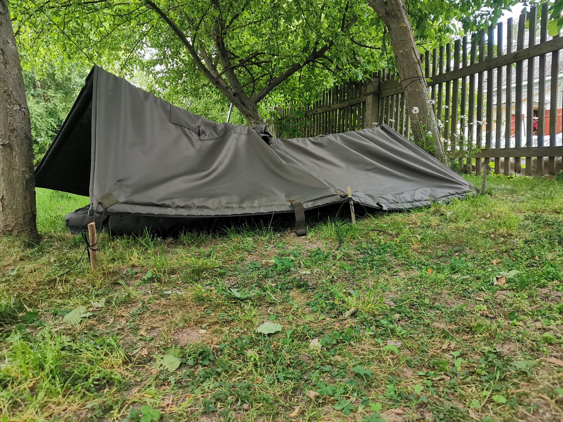 - Утягивающийся капюшон в плаще и верх в спальнике