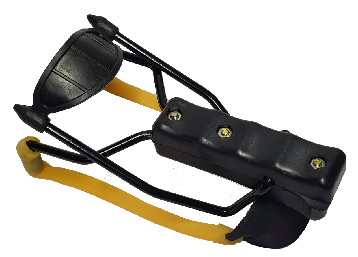Небольшая рогатка, которая не занимает много места. Конструкция рогатки: пластиковая рукоятка, кистевой упор для точной стрельбы, металлические рожки, резинка с кожаной вставкой. Область применения: на рыбалке (для заброса прикормки), на охоте (в основном на мелких животных и птиц), в спортивной и развлекательной стрельбе. Для стрельбы используются металлические шарики