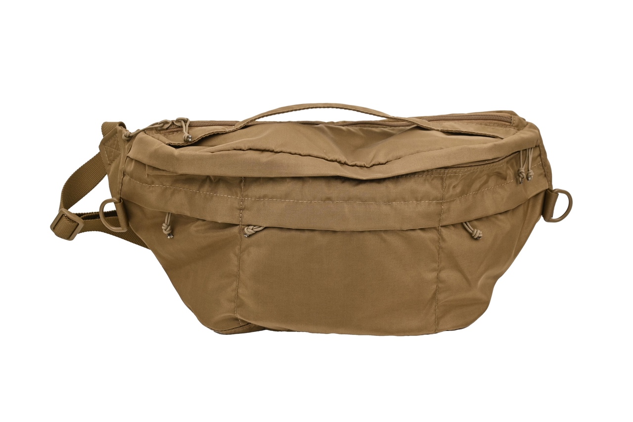 - Между основным отделом и задней стенкой – большой плоский карман, обшитый текстильной петлей велкро для крепления навесного оборудования (например кобуры, держателей магазинов, патронташей и пр.). Молния с двумя замками во всю длину сумки. Для быстрого доступа к содержимому эта молния сделана без клапана.