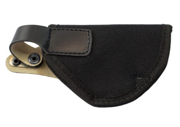 - На задней стенке пришит кожаный ремешок образующий петлю для подвеса на ремень шириной до 50мм. и предохранительный хлястик.