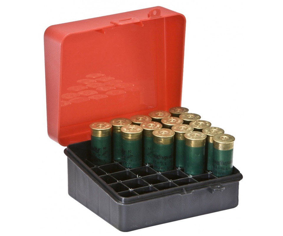Коробка для патронов фирмы Plano - это прямоугольный футляр из ударопрочного пластика для хранения патронов с индивидуальными ячейками вместимостью до 25 патронов 12-16 калибра длиной до 70-76 мм.