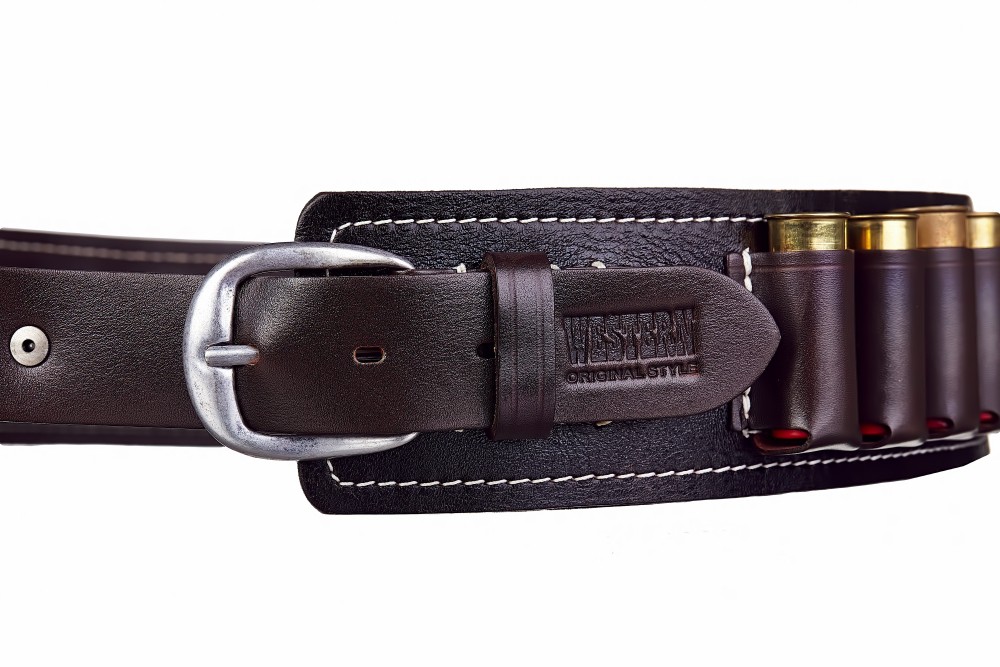 Открытый патронташ на 24 патрона из коллекции WESTERN производства предприятия STICH PROFI (г.Екатеринбург) Выполнен из высококачественной натуральной кожи импортного производства. По всей длине патронташа нашита гармошка для переноски 24 патронов.(12-16 кбр) С обратной стороны патронташ продублирован вторым слоем кожи открытые срезы изделия обработаны специальным красящим составом, защищающим торцы кожи от попадания влаги. На патронташ нанесены методом горячего тиснения два логотипа. Логотип предприятия-изготовителя - Stich Prоfi и логотип наименования коллекции - Westеrn. На патронташе предусмотрена регулировка длины ремня от 1200 до 1350 мм. Вес изделия 500 грамм.