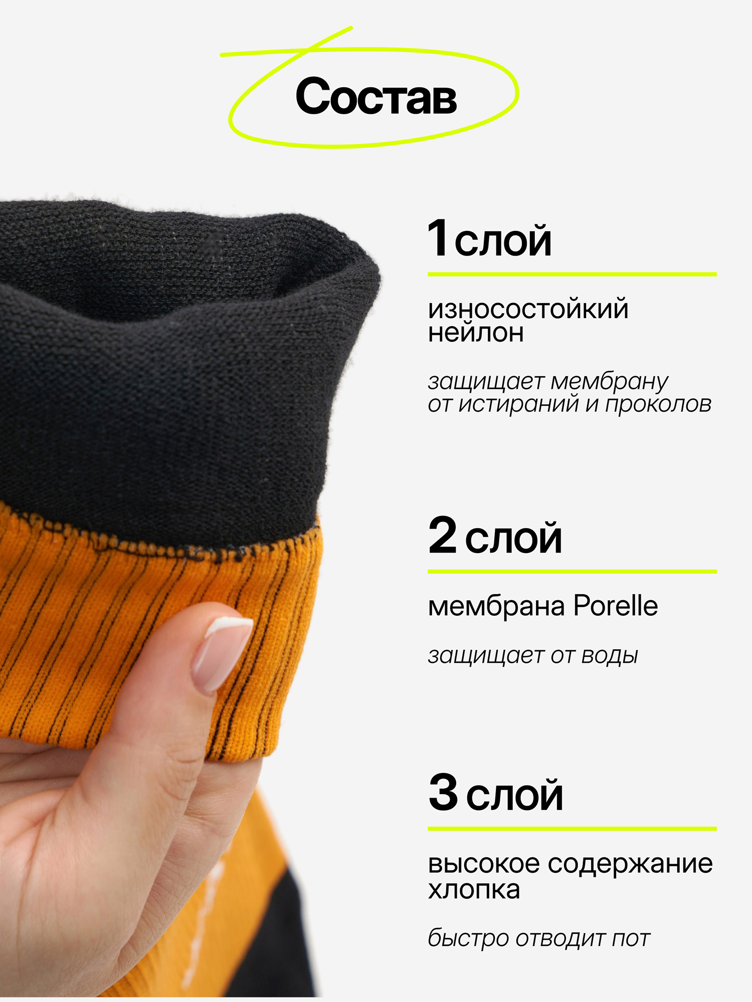 Мембранные носки подходят для занятий спортом. Используйте их во время бега, футбола и хоккея, катания на лыжах и горных лыжах, сноуборде, велоспорте и других видов спорта. Обеспечивают хорошую вентиляцию и циркуляцию воздуха. Теплые непромокаемые мужские носки — незаменимый элемент формы для спортсменов командных, зимних видов спорта. Идеальные для тактического назначения, они имеют повышенную прочность и износостойкость. Отправляясь отдыхать во влагоотталкивающих носках на природу, сплав по реке, на трекинг, хайкинг, в дальние поездки, поход или просто пешие прогулки по лесу, вы можете не беспокоиться о том, что ноги промокнут. Влагонепроницаемые носки имеют эргономичный дизайн с анатомической посадкой, что обеспечивает точное прилегание к стопе и минимизирует риск натирания, а это крайне важно при высоких нагрузках. Трекинговые носки с влагоотводящими свойствами спасут ваши ноги этой весной. При выборе подходящего размера термоноски также подойдут для мальчиков- и девочек-подростков, для женщин и мужчин.