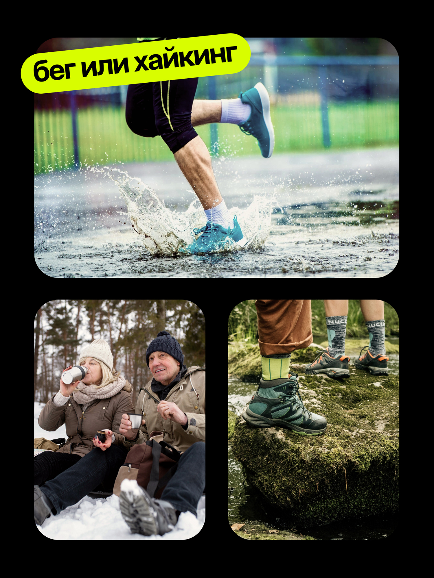 Мембранные носки подходят для занятий спортом. Используйте их во время бега, футбола и хоккея, катания на лыжах и горных лыжах, сноуборде, велоспорте и других видов спорта. Обеспечивают хорошую вентиляцию и циркуляцию воздуха. Теплые непромокаемые мужские носки — незаменимый элемент формы для спортсменов командных, зимних видов спорта. Идеальные для тактического назначения, они имеют повышенную прочность и износостойкость. Отправляясь отдыхать во влагоотталкивающих носках на природу, сплав по реке, на трекинг, хайкинг, в дальние поездки, поход или просто пешие прогулки по лесу, вы можете не беспокоиться о том, что ноги промокнут. Влагонепроницаемые носки имеют эргономичный дизайн с анатомической посадкой, что обеспечивает точное прилегание к стопе и минимизирует риск натирания, а это крайне важно при высоких нагрузках. Трекинговые носки с влагоотводящими свойствами спасут ваши ноги этой весной. При выборе подходящего размера термоноски также подойдут для мальчиков- и девочек-подростков, для женщин и мужчин.