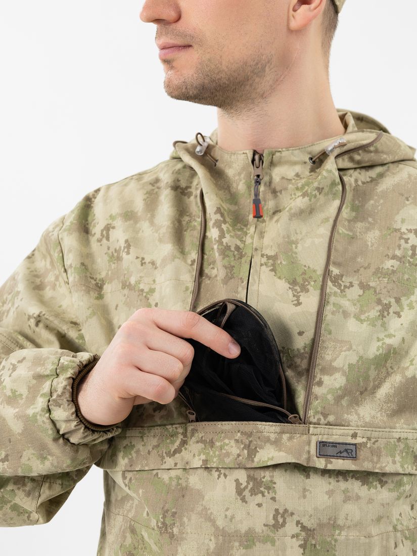 - Москитная сетка на капюшоне обеспечивает дополнительную защиту от комаров и прячется в кармшек на груди.