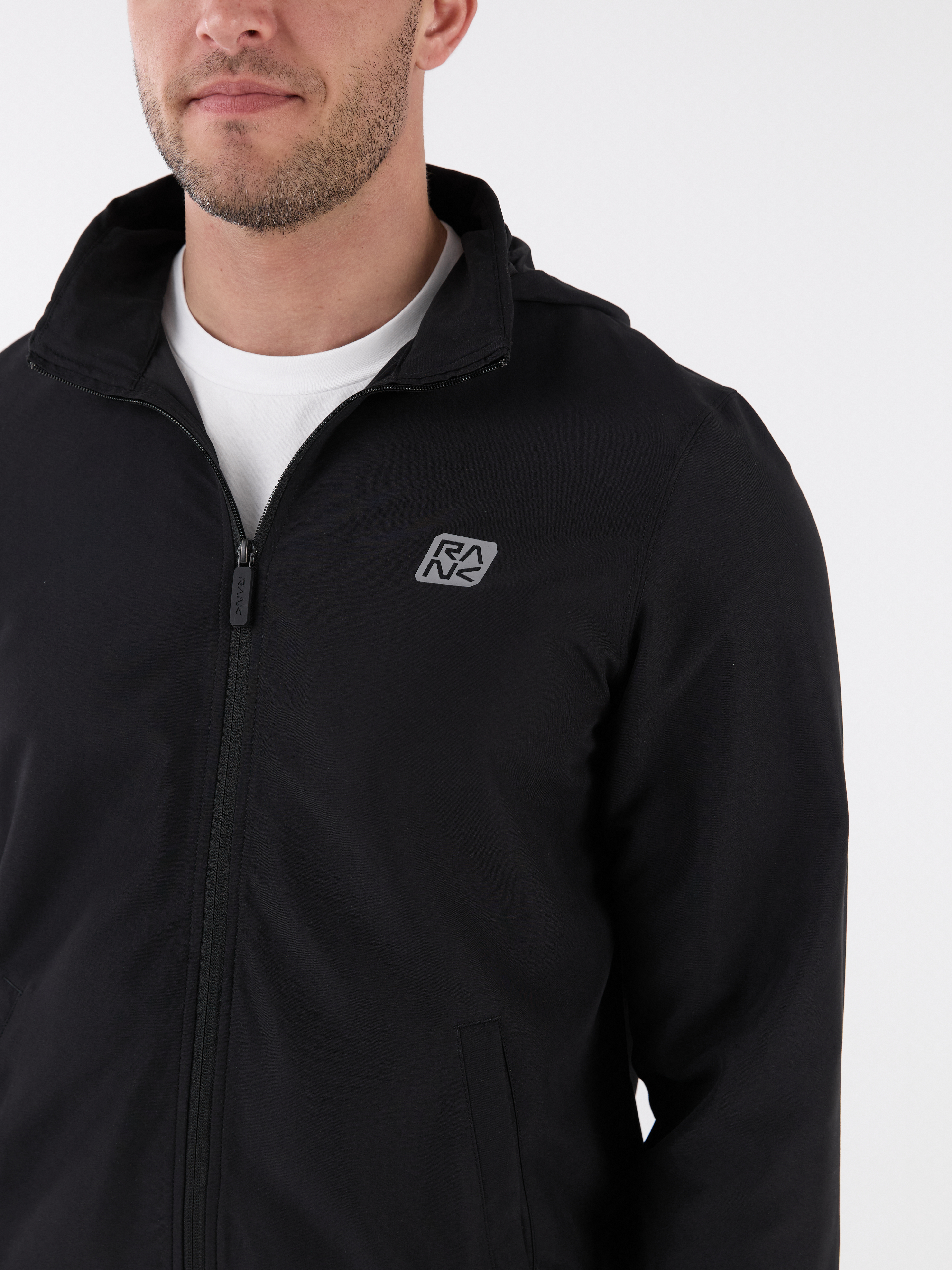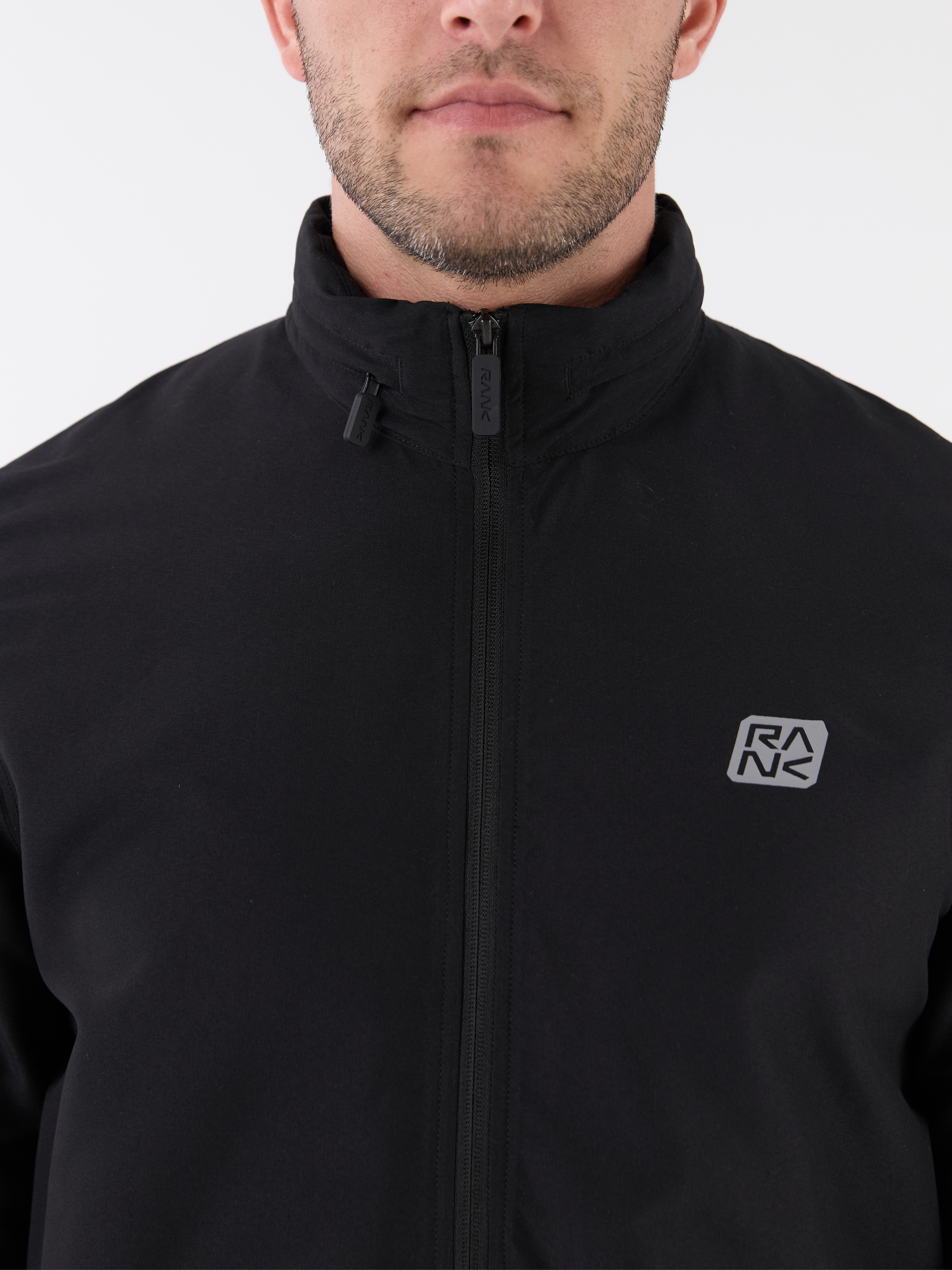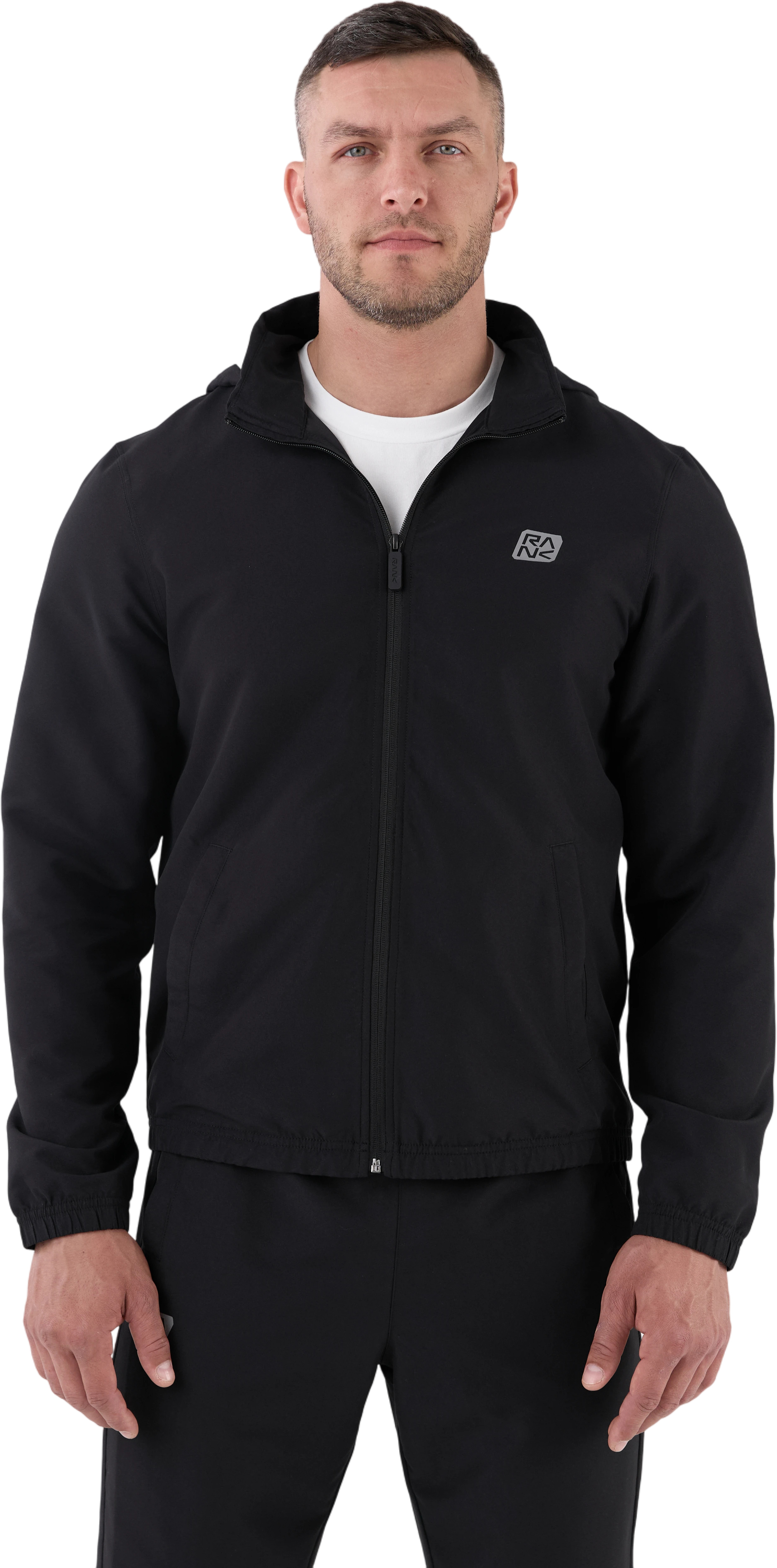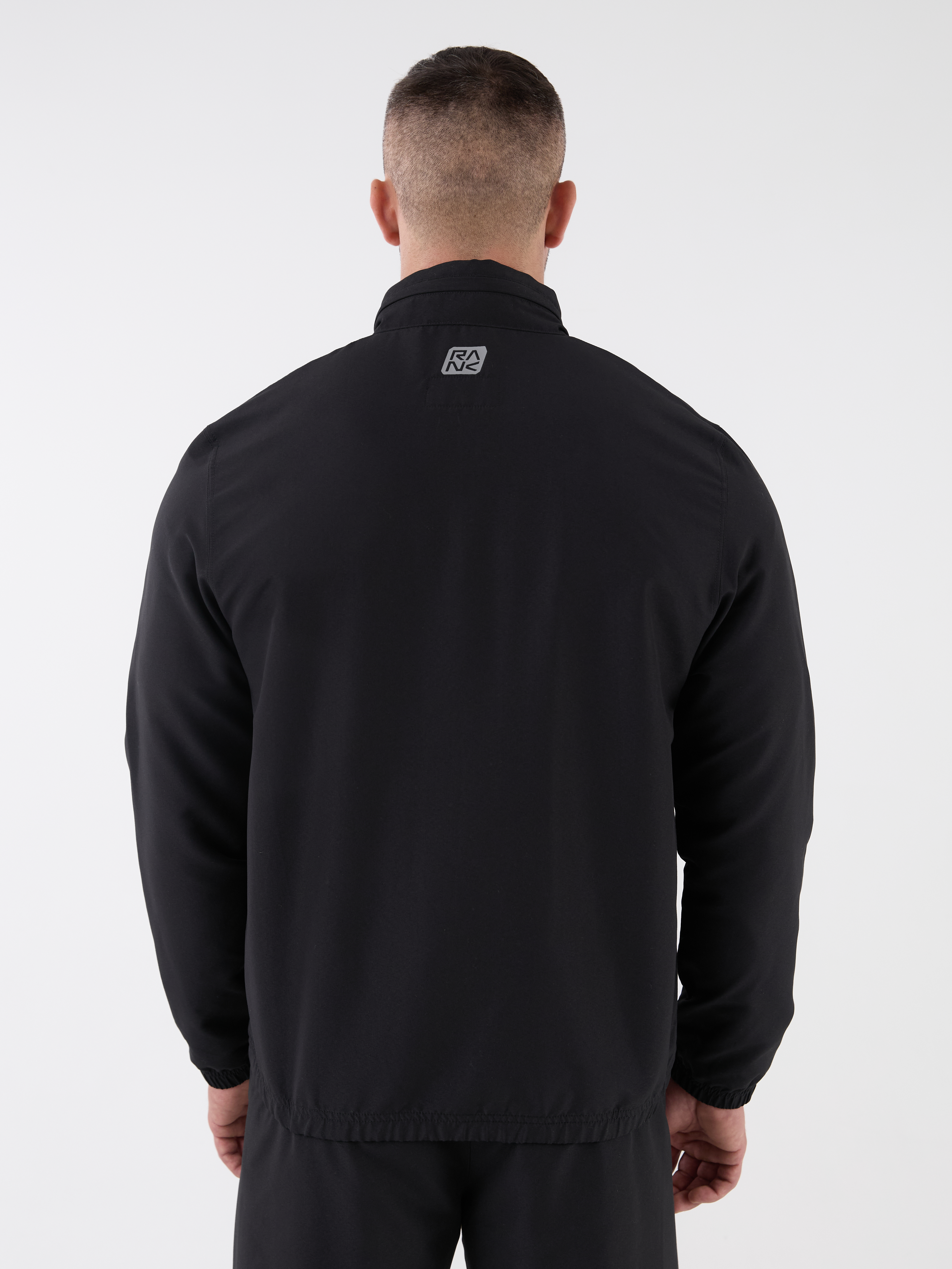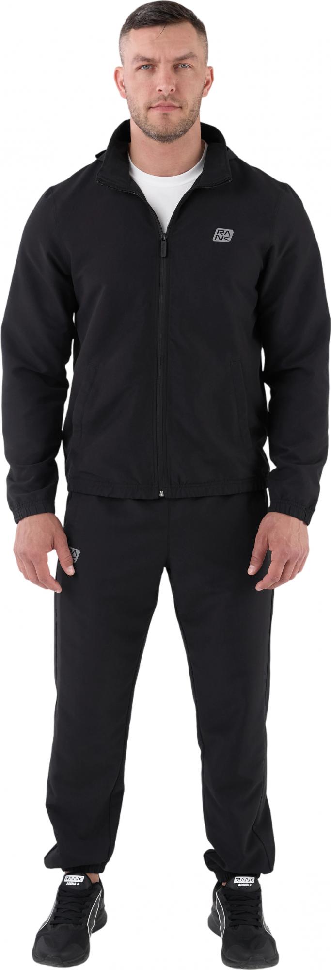 Костюм включает ветровку со скрытым капюшоном на молнии, который можно убрать в воротник-стойку. Центральная реверсивная молния с силиконовым пуллером обеспечивает аккуратный внешний вид. Боковые карманы выполнены без молний и дополнены лёгкой сетчатой подкладкой. Брюки прямого кроя обеспечивают свободу движений. Два боковых кармана позволяют удобно расположить необходимые мелочи. Внутренние плоские шнурки помогают настроить посадку. Манжеты на ветровке, рукавах и по низу брюк удерживают тепло и сохраняют форму. Пластизолевые логотипы RANK нанесены на ветровку и брюки.