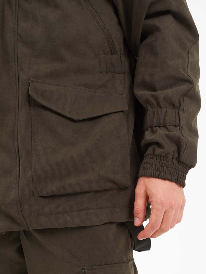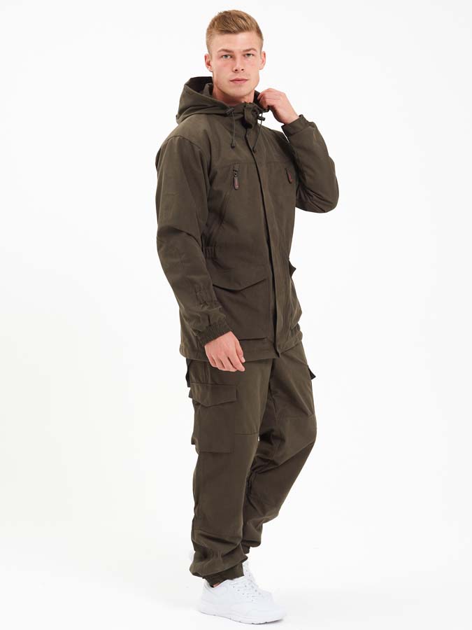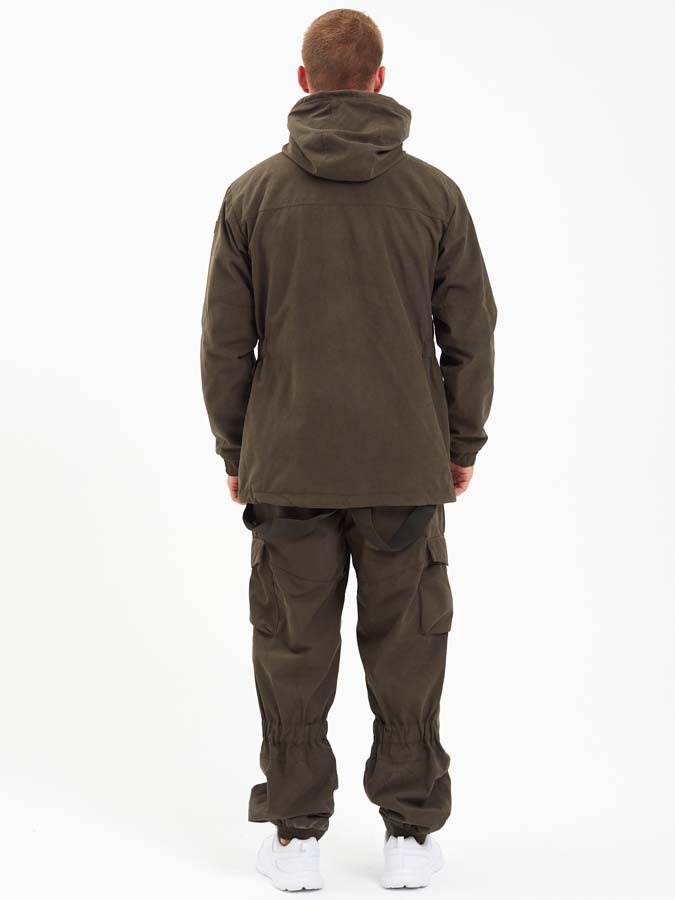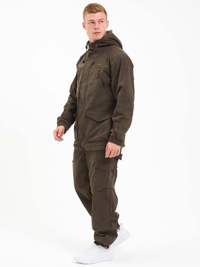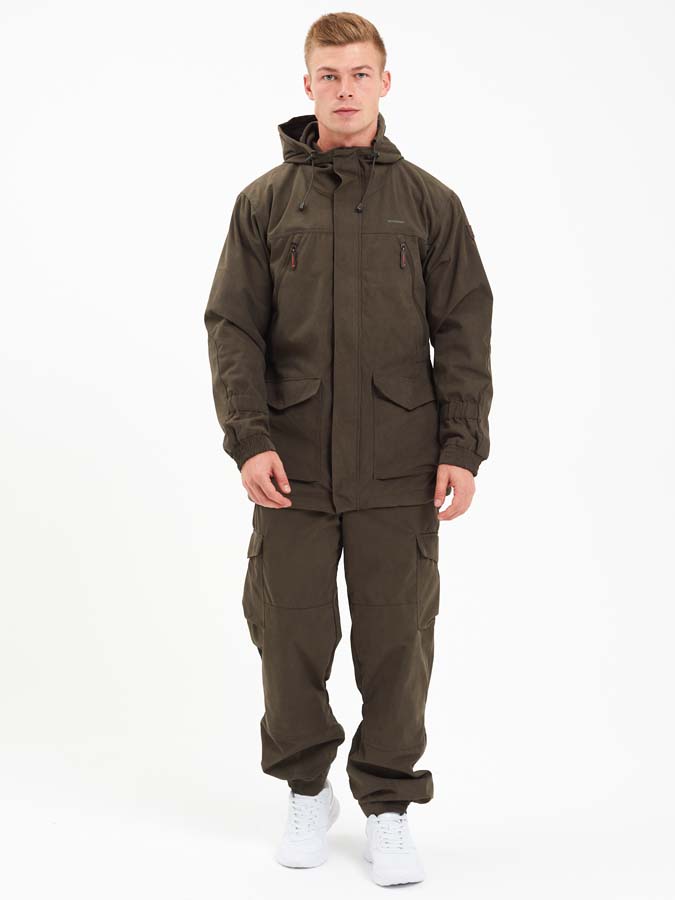 В куртке 6 глубоких карманов, Удобный, регулируемый капюшон на флисе, Усиленные накладки на локтях и плечах, Центральная молния защищена планкой на кнопке, Есть утяжки на капюшоне, нижней части куртки и на талии. Манжеты рукавов с широкой резинкой. На штанах есть 4 функциональных кармана и подтяжки, усиление в области колен и ягодиц, Застежка-пуговица Канада, Широкие шлевки для ремня, Регулировка по талии, Есть дополнительные закрепки в местах повышенной нагрузки, Швы надежные с двойной строчкой.