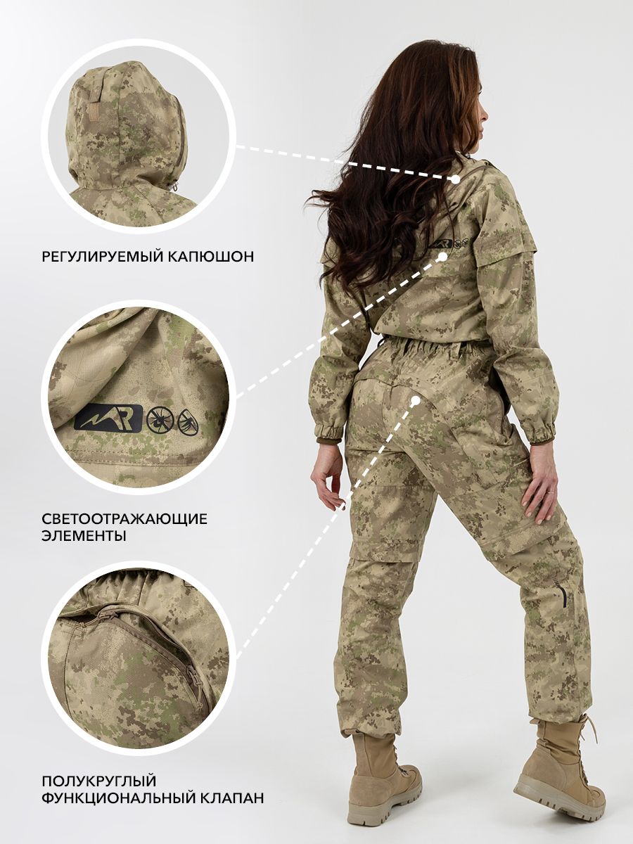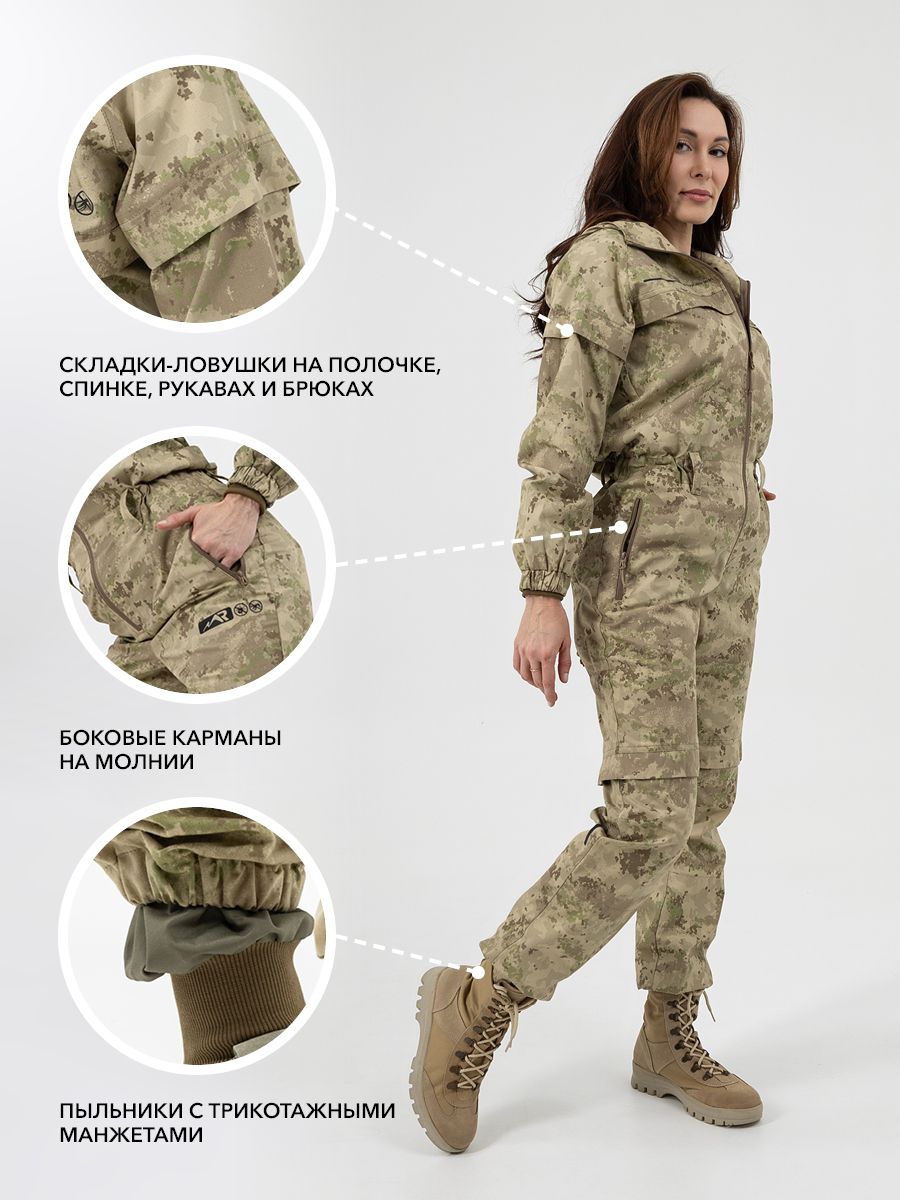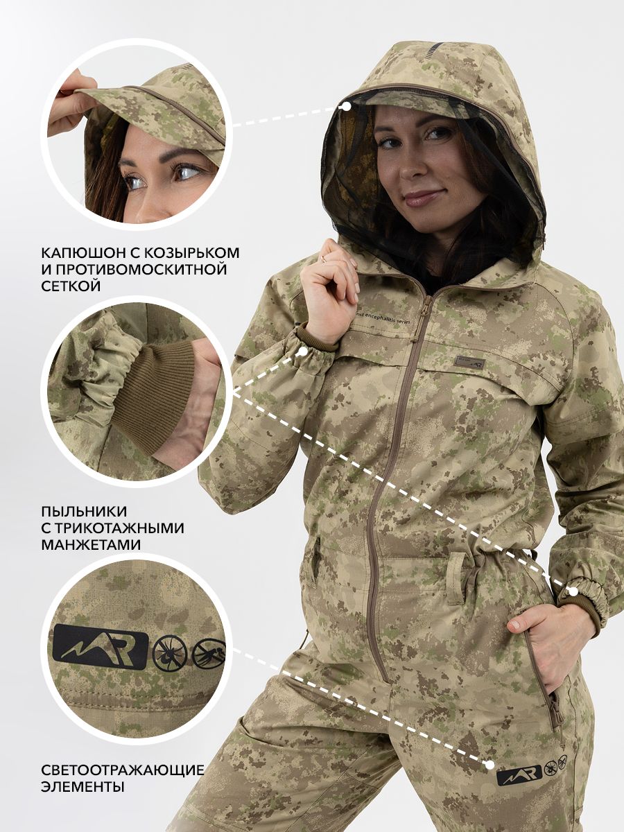 - Плотные трикотажные манжеты на брюках и рукавах не дадут насекомым пробраться внутрь.