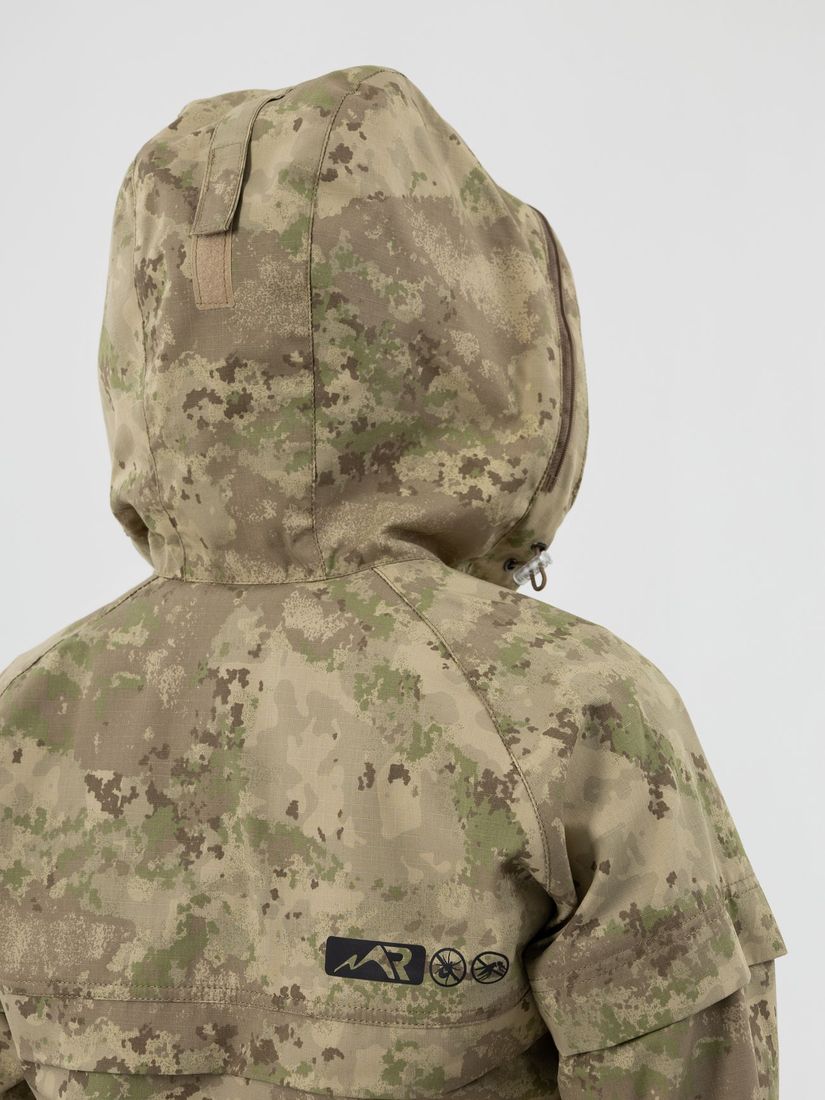 - Съёмная сетка на капюшоне обеспечивает дополнительную защиту от комаров.