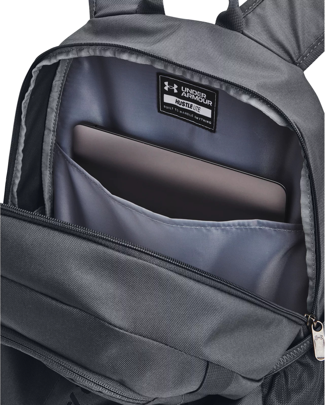 - Водостойкий материал UA Storm защищает ваши вещи от непогоды, сохраняя их сухими в любых условиях.