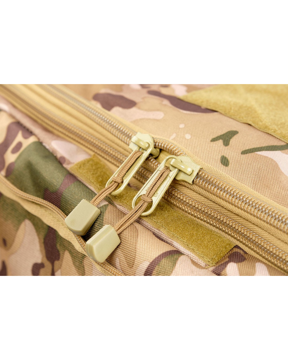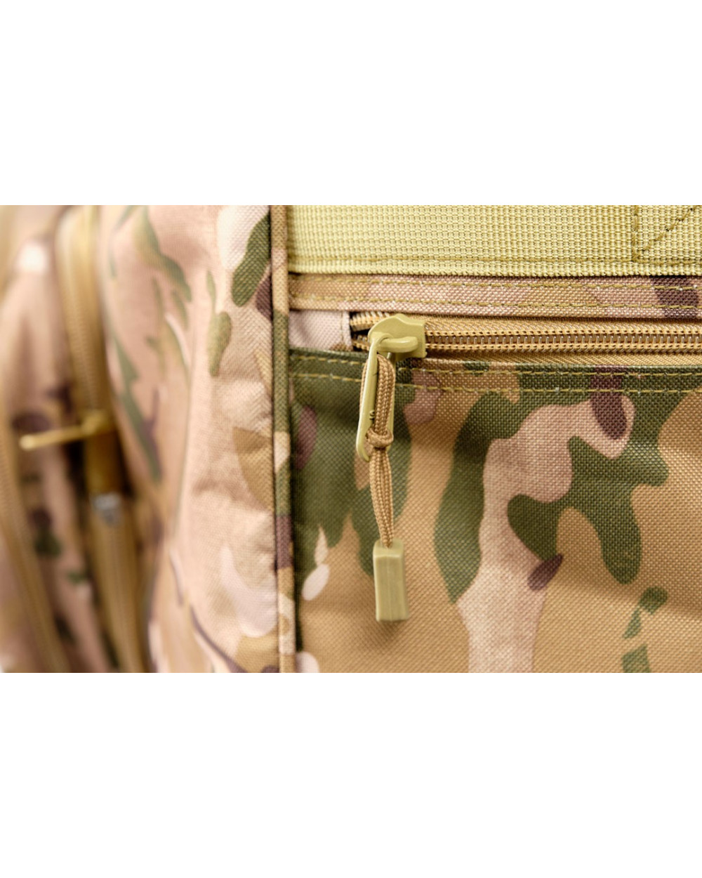 Сумка обладает прочной пластиковым щитом и рельсами для обеспечения жесткости и прочности. Основной отсек имеет пенопластовую подкладку для защиты ценных вещей и разделитель для организации содержимого. Внутри основного и вспомогательного отделений расположены множество карманов и мешков, включая сетчатые отсеки на молнии для харнения мелочей.