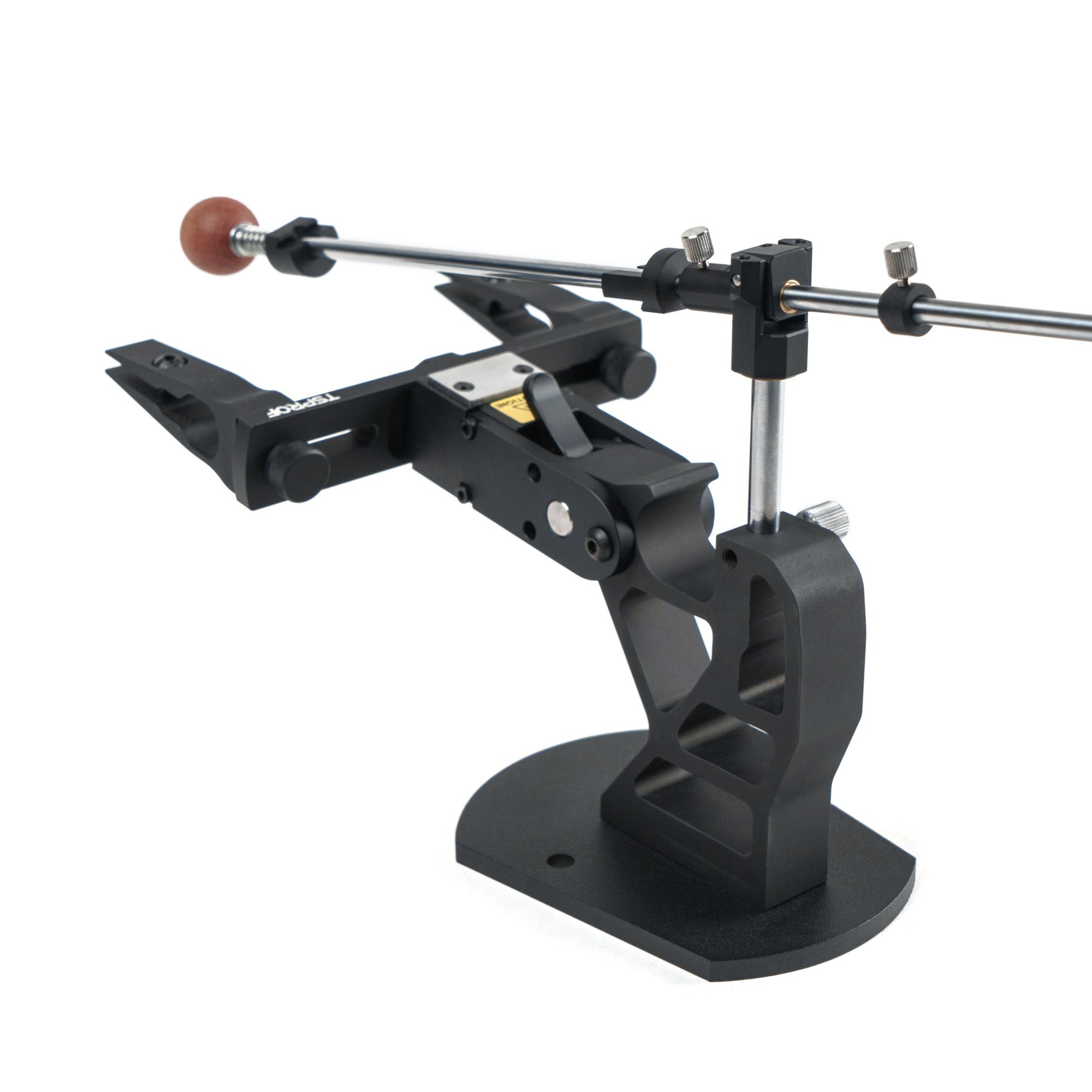 TSPROF Pioneer 2026 – самое легкое из заточных устройств (весит всего 1,2 кг), и для его крепления к столу используется поставляемая в комплекте струбцина. Унифицированное основание позволяет установить системы в подставку Профиль К03. Затачивать ножи на TSPROF Pioneer 2026 удобно как левшам, так и правшам, поскольку все элементы устройства можно расположить под левую или правую руку.
