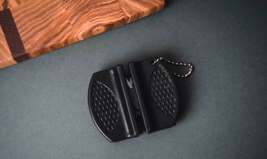 Начинайте работу с абразивом из карбида, затем переходите на более мягкий абразив из керамики. Надежно удерживая за рифлёную поверхность, поместите клинок на абразив и с небольшим усилием потяните на себя. Процедуру необходимо повторить несколько раз в зависимости от состояния режущей кромки и желаемого результата.