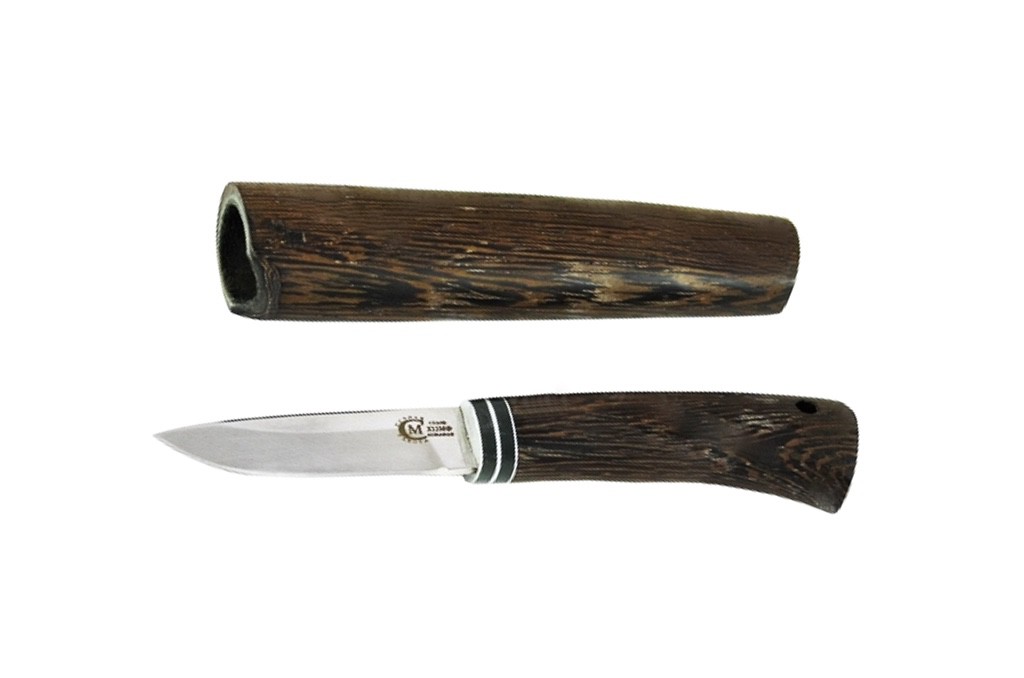 Ножны к этому ножу из кованой стали Х12МФ изготовлены из древесины венге
