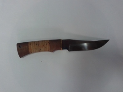 Нож туристический с фиксированным клинком можно отнести к универсальным. Он оснащен удобной рукояткой из дерева, которая надежно лежит в руке. Клинок мощный и прочный, ножом можно проводить любые несложные работы. Материалом послужила коррозионностойкая сталь. Нож имеет надежную конструкцию, что повышает удобство и безопасность его применения. В комплекте есть кожаные ножны, для хранения и переноски.