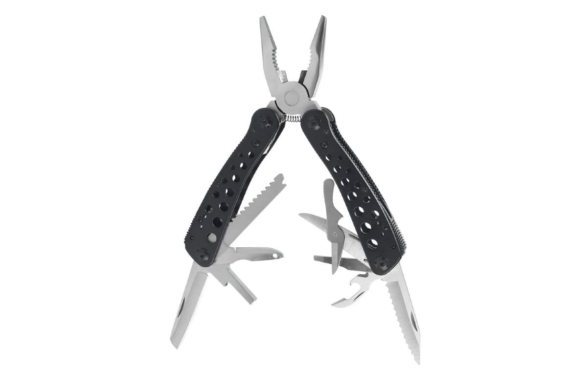 - Инструменты ножи с прямым и серрейторным лезвием, небольшие подпружиненные ножницы, пила, шило, отвертка с прямым шлицем, открывалка для консервов