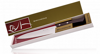 Рукоять выполнена из натурального дерева. Дерево является одним из самых традиционных и распространенных материалов для рукоятей ножей. Основным плюсом древесины является то, что, благодаря своей текстуре, она позволяет без особых усилий практически любую художественную форму рукояти.