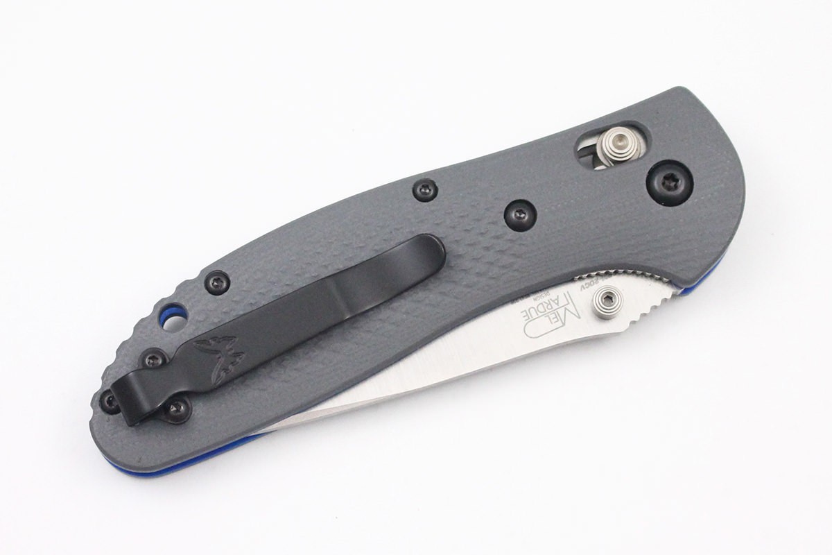 Одно из самых удачных обновлений в линейки складных ножей компании Benchmade - нож Benchmade 551-1 Griptilian, CPM-20CV Blade, G-10 Handle. Теперь клинок ножа изготавливают из великолепной стали CPM-20CV, которая относится к так называемым супер-сталям. Клинок из этой стали отлично держит заточку и обладает высокой коррозионной стойкостью. Рукоять ножа выполнена из двухслойного стеклотекстолиты серого цвета снаружи и синего внутри рукояти. Бонки ножа теперь анодированы и имеют красивый синий цвет.