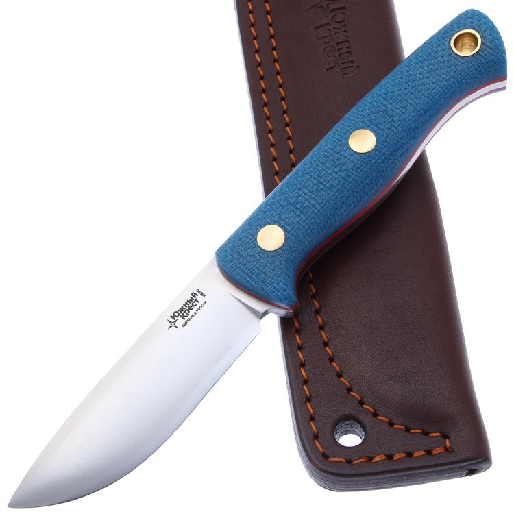 Рукоять выполнена из микарты — это конструкционный композитный материал, представляющий собой слоистый пластик на основе ткани и полимерного связующего вещества. Он прочный, не впитывает ни воду, ни запахи, тактильный и высоко декоративный. Кроме того, текстолит хорошо переносит значительные перепады температуры.