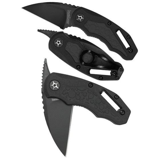 Компактный фрикционный нож. Чтобы его раскрыть необходимо надавить на плавник. В системе не стоит никаких пружин, поэтому нож раскрывается плавно. Профиль клинка видоизмененный Wharncliffe. Название происходит от фамилии английского лорда, который где-то в начале XIX века заказал мастеру-ножеделу нож с примерно таким клинком. Это удобная форма для строгания, реза на себя, а также заточки. С обратной стороны рукояти, можно выдвинуть крохотные щипчики. Рукоять изготовлена из GRN — это живучий материал, хорошо противостоит ударам и открытому огню.