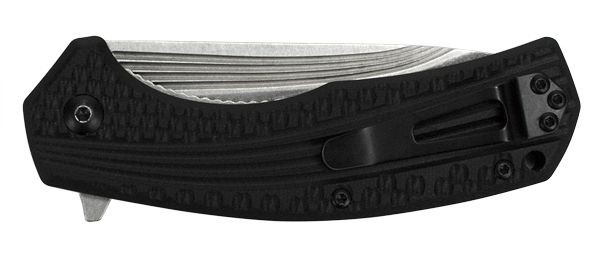 Нож повседневного ношения, с замком Liner Lock и удобным механизмом открывания SpeedSafe, запатентованным компанией Kershaw. Этот механизм позволяет просто и быстро, одной рукой открыть нож толчком по штифту, расположенному на клинке. Сталь не высокой закалки 54-55HRC, средне держит остроту режущей кромки и быстро затачивается. Покрытие StoneWash делает поверхность матовой и маскирует потёртости и царапины, появляющиеся в процессе эксплуатации, а также придаёт дополнительную твердость, износостойкость и антибликовые свойства. Рукоять из прочного термопластика, не скользит даже в мокрой руке.
