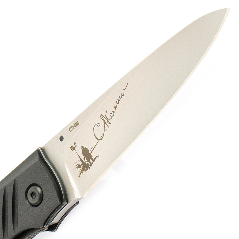 Cталь клинка D2 — самая популярная марка в ножевой промышленности США, одна из популярнейших высокоуглеродистых сталей в мире на сегодняшний день. По мнению многих производителей это — лучшая по совокупности свойств ножевая сталь. Изредка её называют "полу-нержавеющей" – содержит около 12% хрома, что недостаточно, чтобы назвать D2 полноценной коррозионностойкой сталью.
