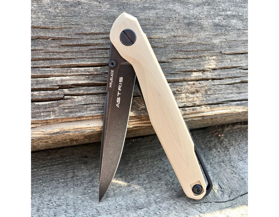 Astris один из самых элегантных складных ножей Mr.Blade теперь в новом исполнении. Можно назвать его более летним, более тактическим, более контрастным… Но оно явно удачное. Стремительные линии и изящество этого невесомого полноразмерного ножа ещё больше подчёркиваются сочетанием клинка в обработке BlackWash и рукояти с накладками из G10 в расцветке Tan. Рукоять стала гладкой – исчезла насечка на G10, что не сказалось на надёжности хвата, а карманы брюк явно скажут спасибо.