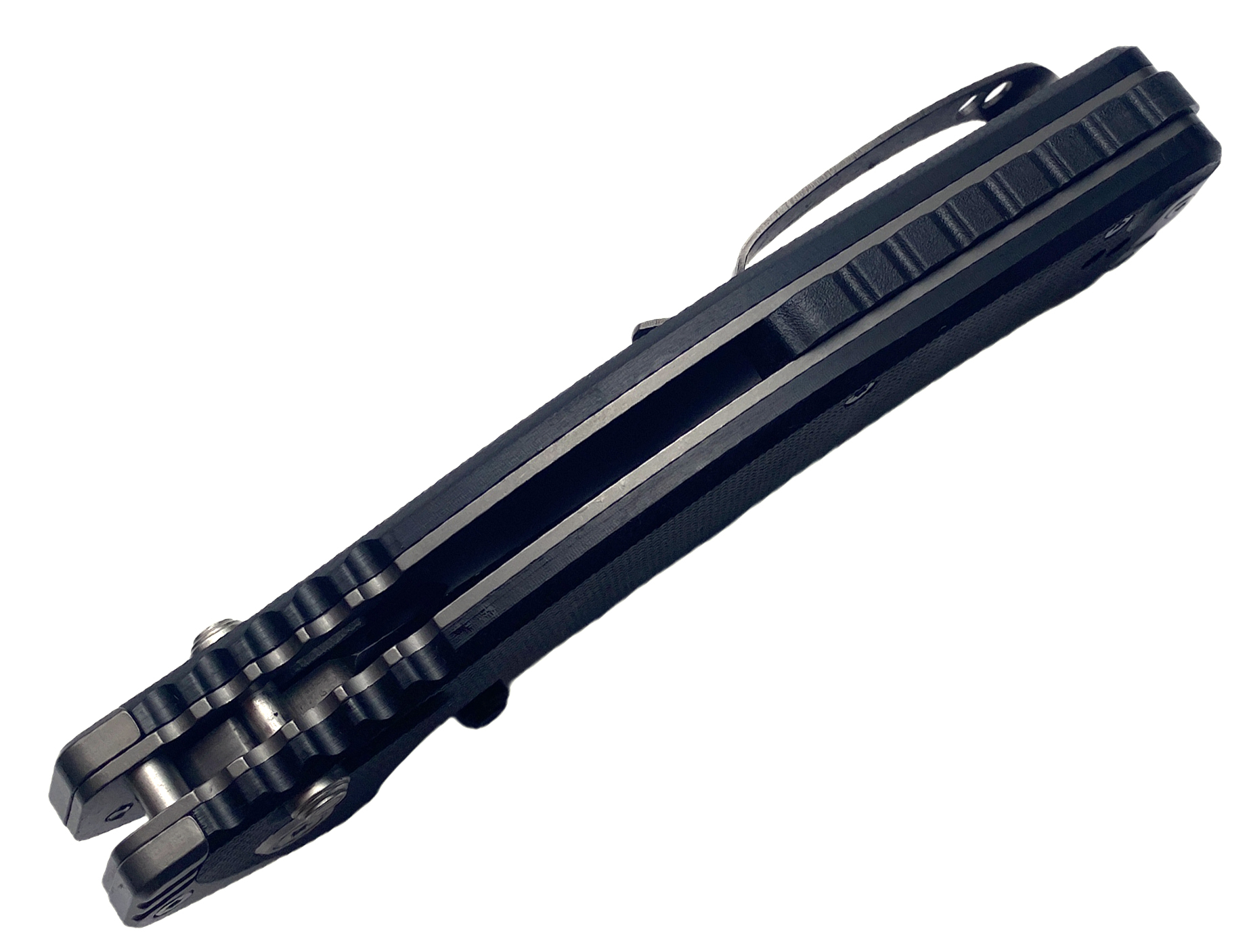 Лайнеры рукояти выполнены из нержавеющей стали. Накладки сделаны из прочного стеклотекстолита G10 – это композитный материал, который создается из стеклоткани и эпоксидной смолы. В процессе производства стекловолокно вымачивается в смолах и подвергается сжатию. В результате получается материал, который отлично подходит для работы в трудных условиях. G10 прочен и ударостоек, хорошо переносит влагу и легко поддается окраске. Внешне он напоминает микарту, но превосходит ее в прочности и огнестойкости. Рукоять ножа оснащена удобной клипсой Ambi-Clip с глубокой посадкой.