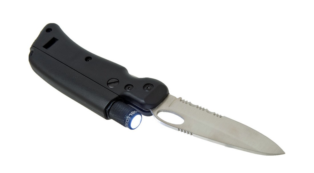 Нож Toollogic SL1 — это инструмент, который поможет вам в чрезвычайных ситуациях. Нож оснащён ярким светодиодным фонарём с белым светом, работающим от четырёх батареек. Фонарь водонепроницаем и им можно пользоваться на небольшой глубине. Нож также укомплектован зазубренным острым лезвием и громким свистком, что делает его незаменимым в экстренных ситуациях. Клипса на рукояти позволяет закрепить инструмент на поясе или в кармане таким образом, чтобы его можно было оперативно достать.