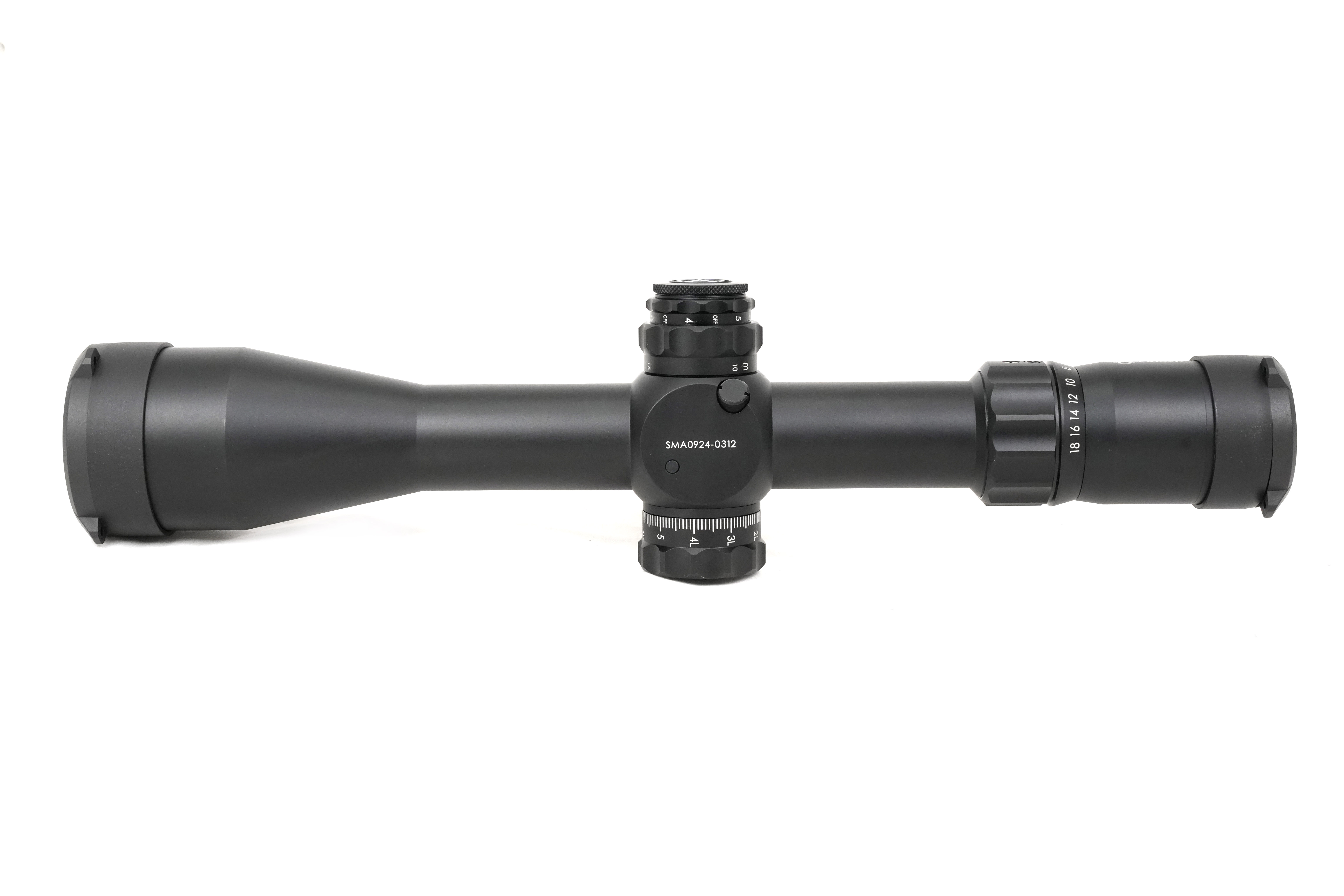 Оптическая система прицела построена на основе премиальных ED стекол с низкой дисперсией, что полностью устраняет хроматические аберрации. Многослойное просветляющее покрытие FMC значительно увеличивает светопропускную способность. Объектив с диаметром передней линзы 50 мм обеспечивает достаточное количество света для стрельбы даже при слабом освещении. Диапазон увеличения от 3 до 18 крат позволяет выполнять точные выстрелы как на средних, так и на дальних дистанциях. Механизм смены кратности оснащен специальным упором для пальца, что даёт возможность стрелку быстро и удобно менять уровень увеличения без необходимости обхватывать окуляр рукой.