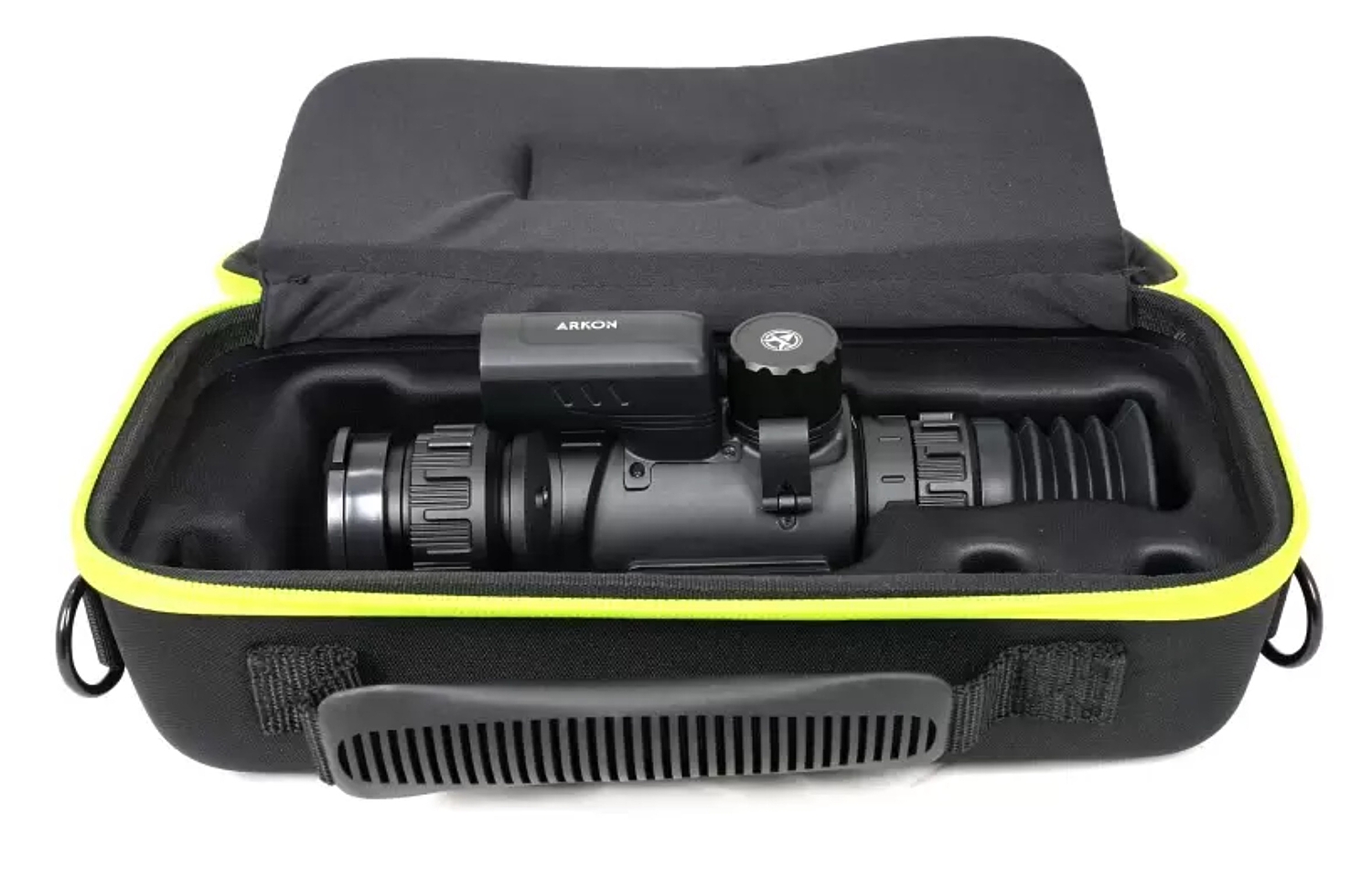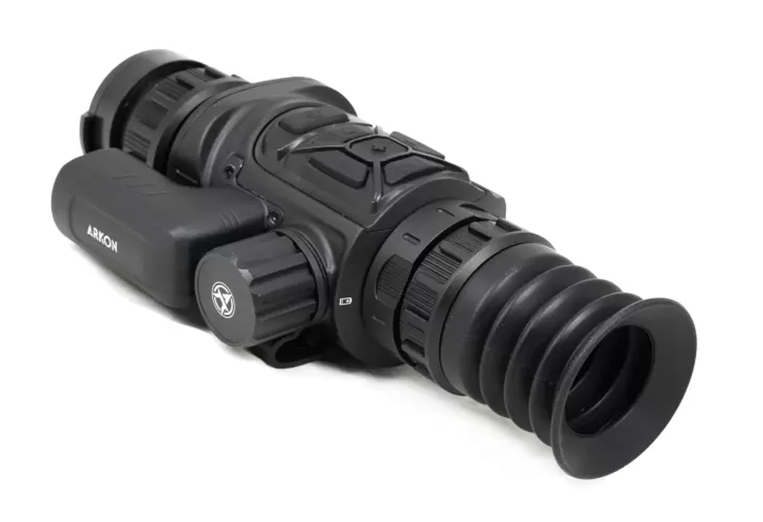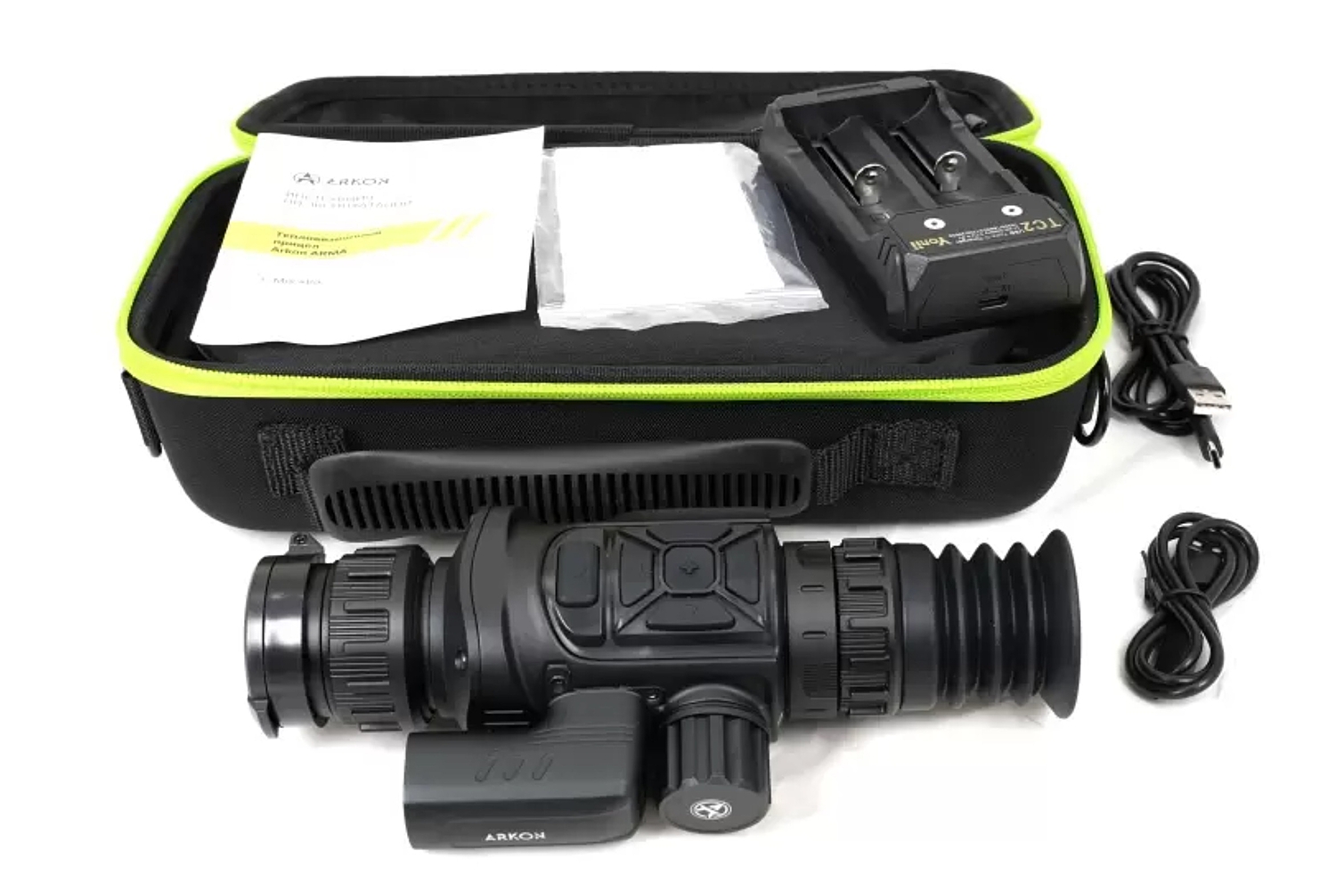 Изготовленный из прочного полиамидного материала корпус имеет защиту от влаги по стандарту IP66, что позволяет использовать его в условиях высокой влажности. Прицел подходит для использования с оружием крупных калибров с максимальной дульной энергией выстрела до 6000 Дж. Питание осуществляется от сменного аккумулятора типа 18650, обеспечивая до 5 часов автономной работы. Для продления времени использования предусмотрено подключение к внешнему источнику питания через USB-порт.