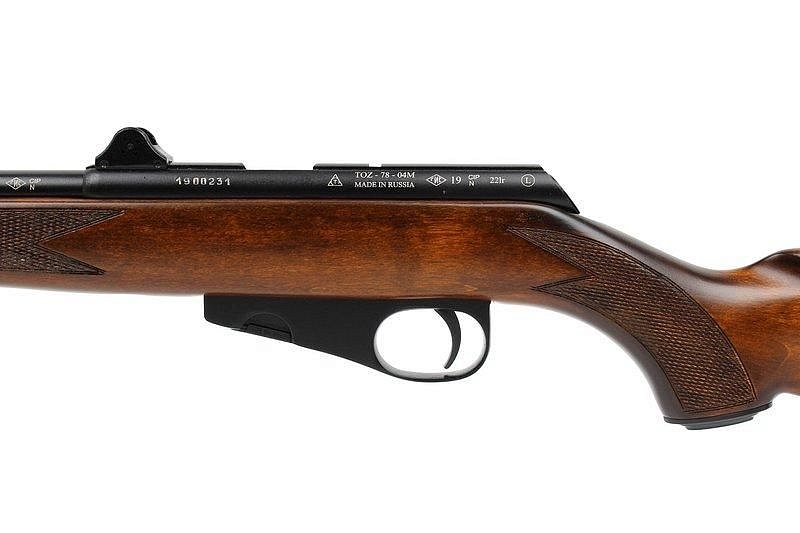 Благодаря тому, что надульная часть ствола имеет резьбу, можно установить на карабин ТОЗ-78-04М глушитель или иной аксессуар. Магазин рассчитан на 5–10 зарядов, затвор функционирует по продольно-скользящему принципу. Приспособление для прицеливания состоит из двух стандартных компонентов — мушки и целика, приклад и цевье изготовлены из березы.