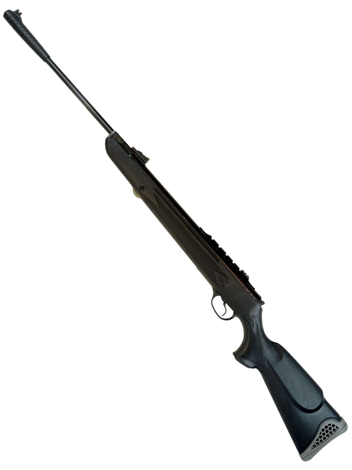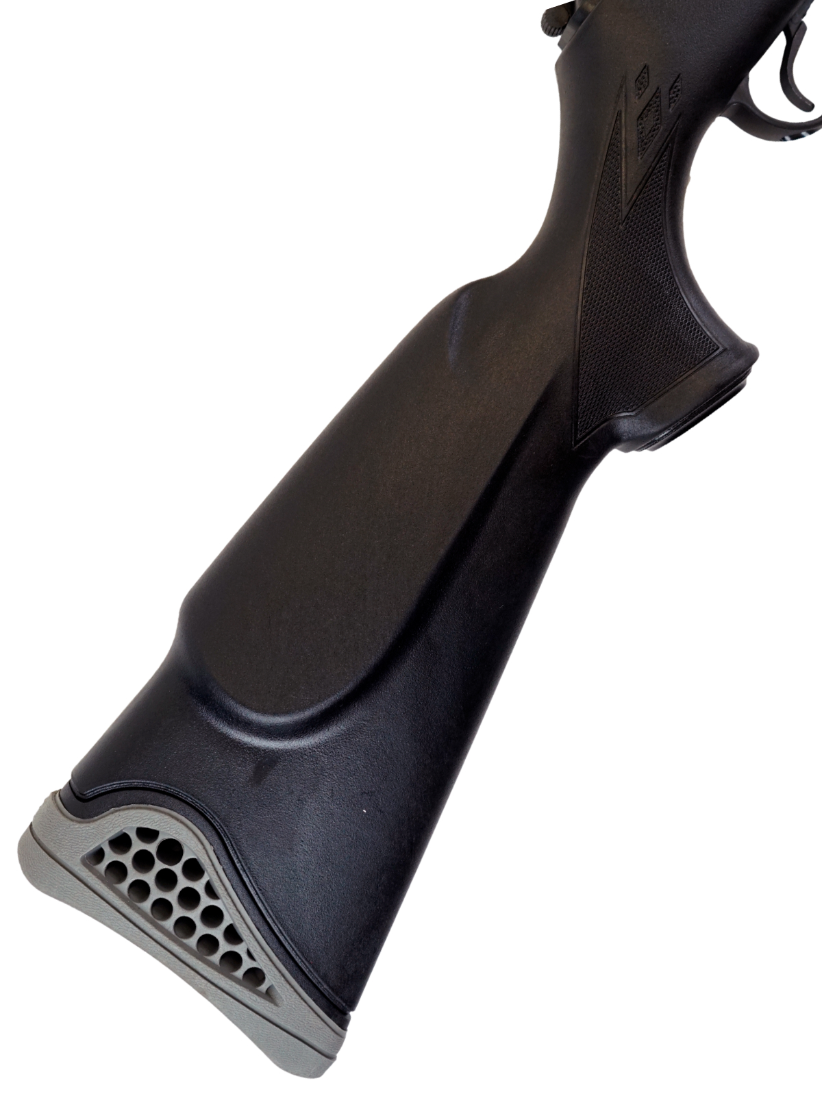 - Материал: ложе - полимер (пластик); ствол - сталь; затыльник - резина